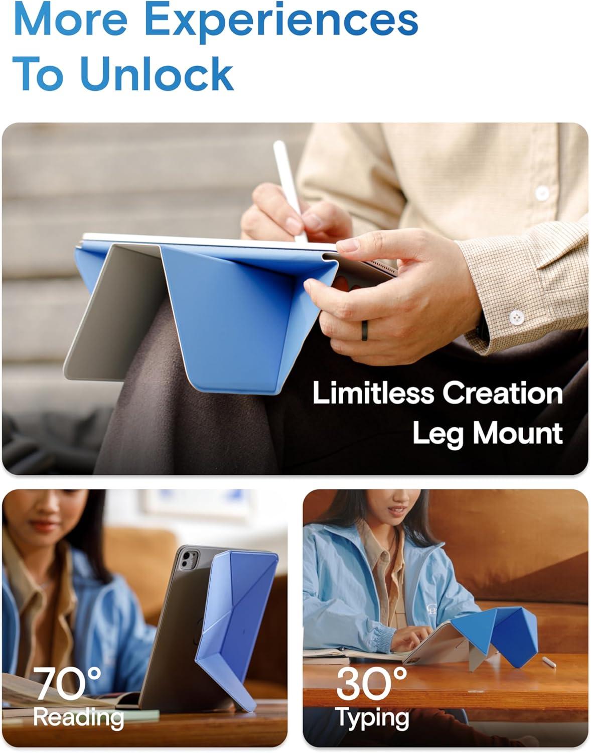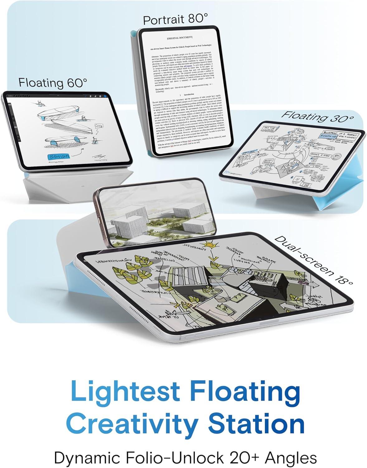Ultimate Ergonomic Floating Modes – MOFT Dynamic Folio Case makes iPad ergonomics effortless for mobile creativity – featuring a single-piece structure that effortlessly folds into a workstation lifting iPads up 2-inches. Frictionless angle shifts between 30° and 60° keep you aligned in your input-output framework.