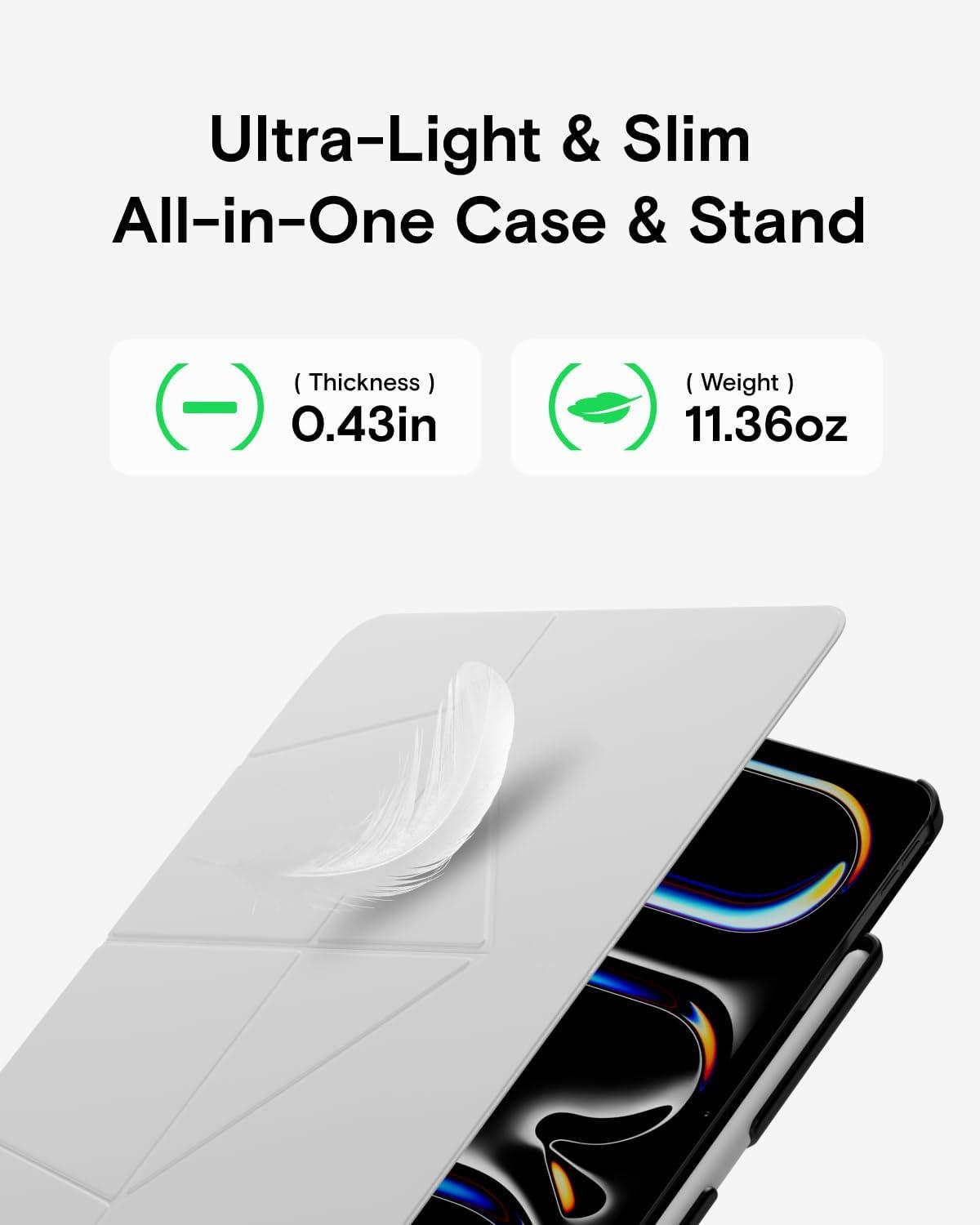 Higher, Lighter, More Portable – MOFT unibody iPad Air case delivers instant yet stable elevation with its foldable design, making it effortless to carry and perfect for any scenario – from family picnics to video conferences. At just 0.38 inches thick, the iPad Air 13-inch case leads the industry in slimness without compromising protection.