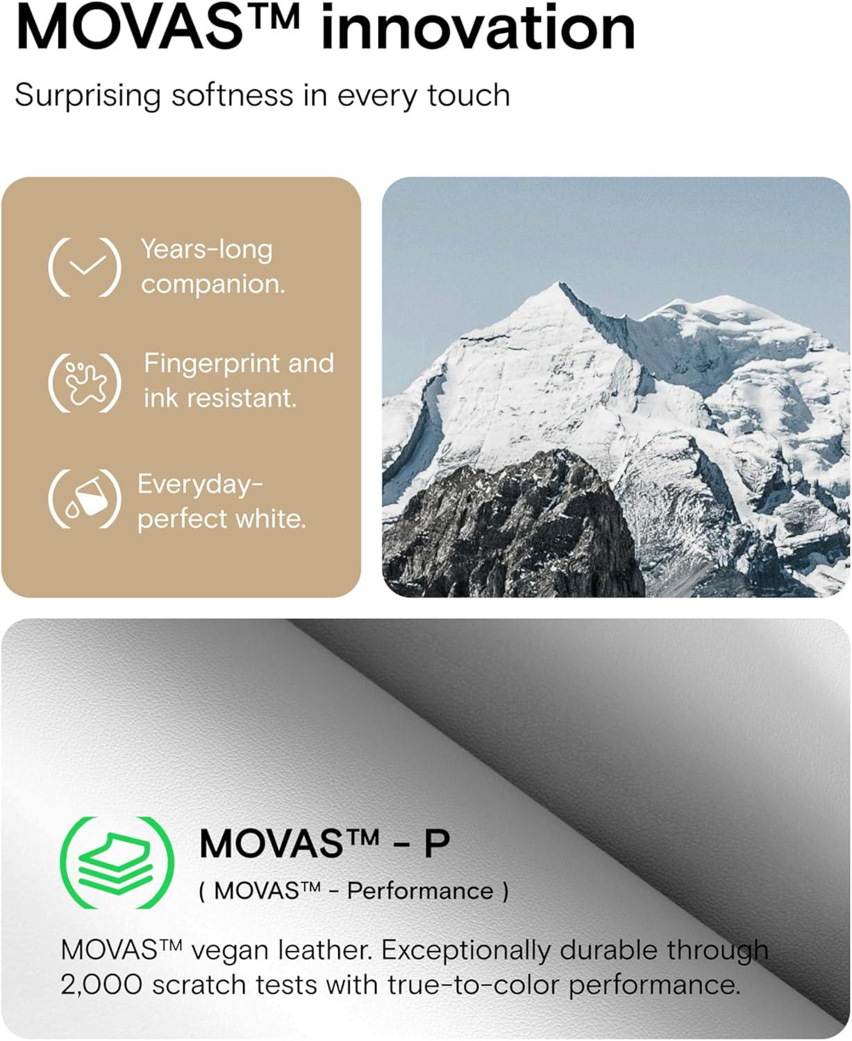 MOVAS Innovation – Made with MOVAS, the revolutionary vegan leather, that combines a silky touch and resistance to everyday dirt and scratches. Sustainably crafted with eco-friendly materials for enduring durability.
