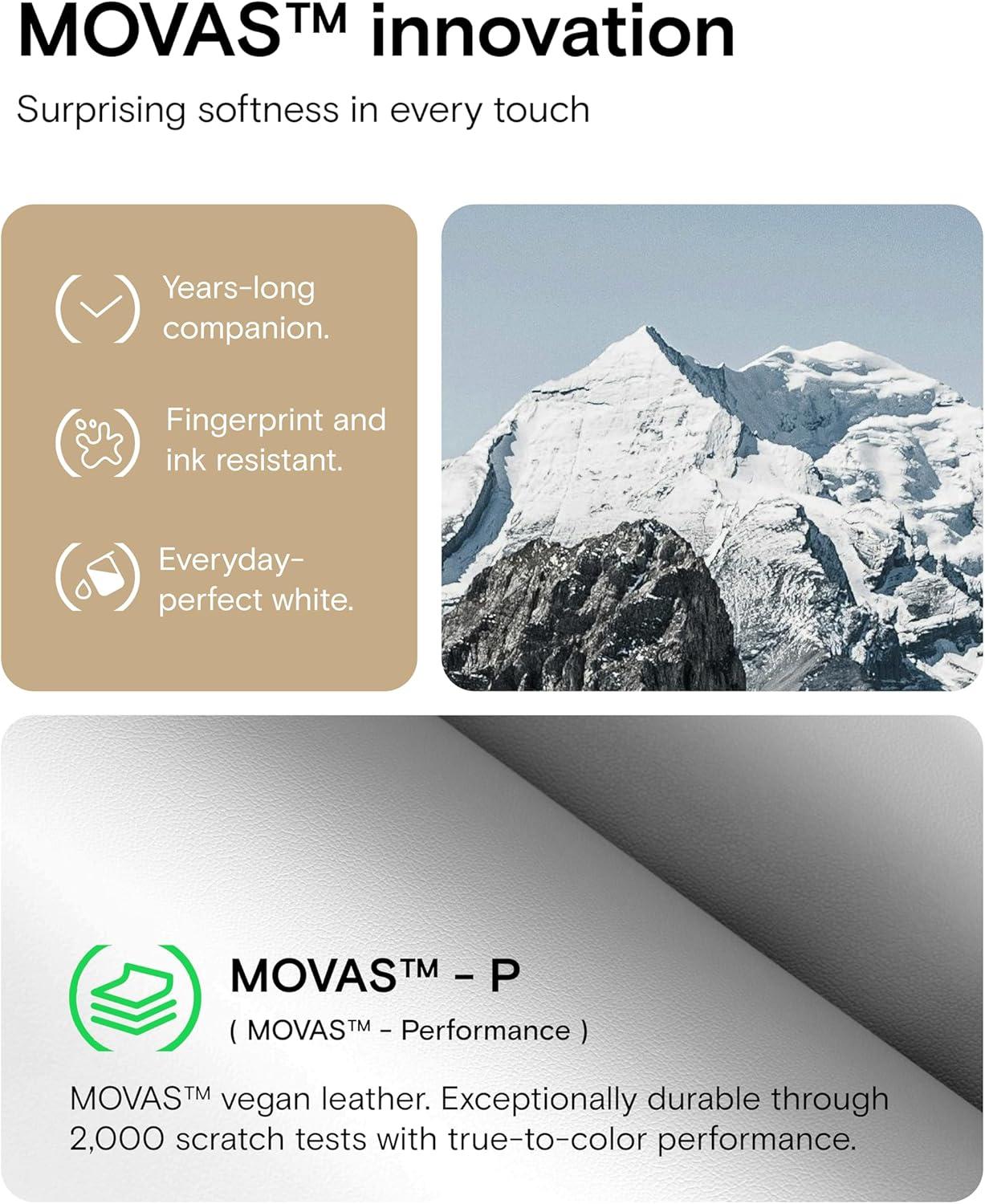 MOVAS Innovation – Made with MOVAS, the revolutionary vegan leather, that combines a silky touch and resistance to everyday dirt and scratches. Sustainably crafted with eco-friendly materials for enduring durability.