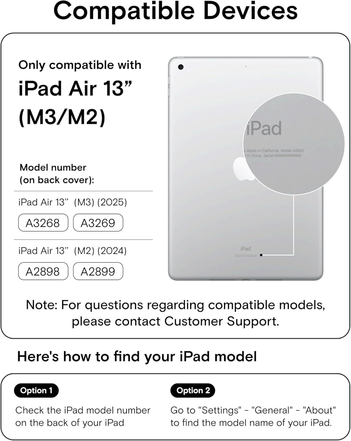 Compatibility – Exclusively compatible with iPad Air 13 inch M3 2025(Model number: A3268/A3269), iPad Air 13 inch M2 2024(Model number: A2898/A2899). Not compatible with other iPad models.