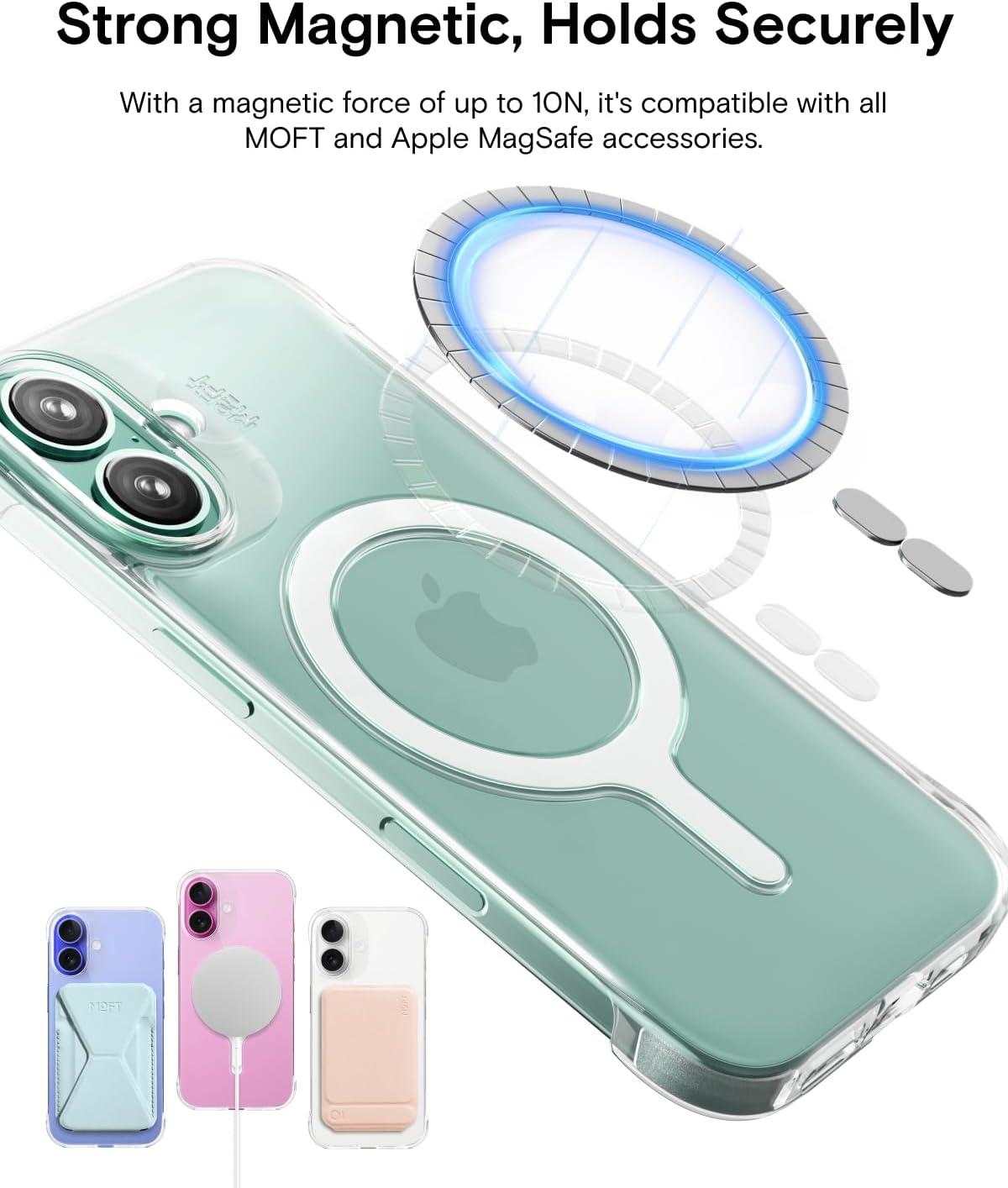 Strong Magnetic, Holds Securely: With a magnetic force of up to 10N, this invisible magnetic iPhone 16 Pro Max case is compatible with all MOFT and Apple MagSafe accessories to customize your device. Note: Magnetic strength rated for accessories under 200g. Not suitable for heavy-duty stands.