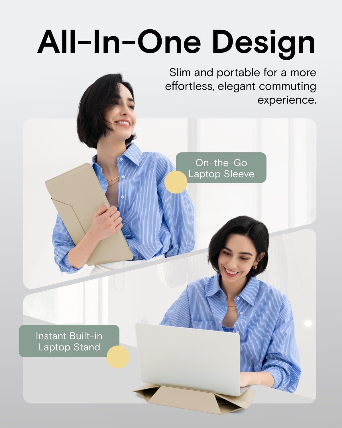 MOFT Laptop Carry Sleeve, 2-in-1 Laptop Bag & Stand for 14″ MacBook Air/Pro & Dell/HP/Lenovo/Asus, Stylish Slim Computer Sleeve Bag with Expandable Storage for Computer Accessories, Soothing Mist(Beach White)