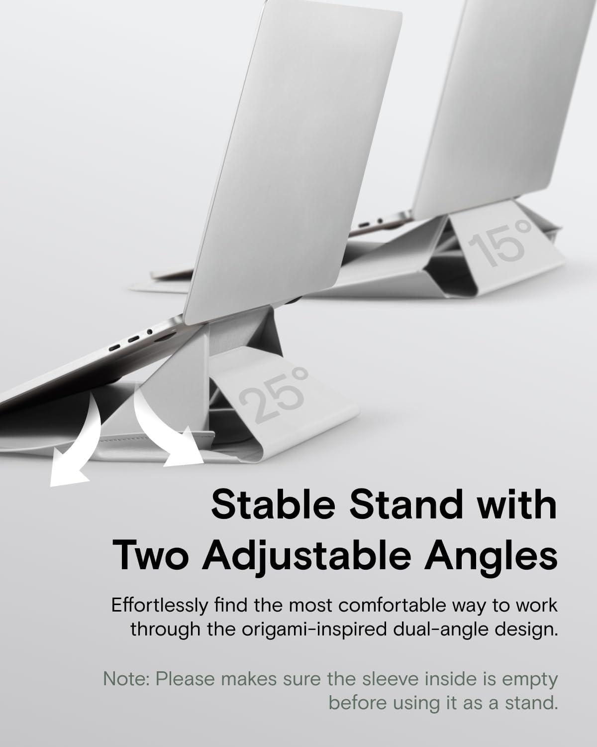 Two Angles Laptop Sleeve Stand: Instantly convert this sleek Laptop Sleeve into a sturdy Laptop Stand. Features dual-angle adjustment (15° for typing; 25° for viewing) to elevate your screen, reducing neck/wrist strain from poor posture. More than a protective Laptop Bag, this ergonomic Computer Bag works anywhere – transforming your carry sleeve into a pain-relieving workstation.