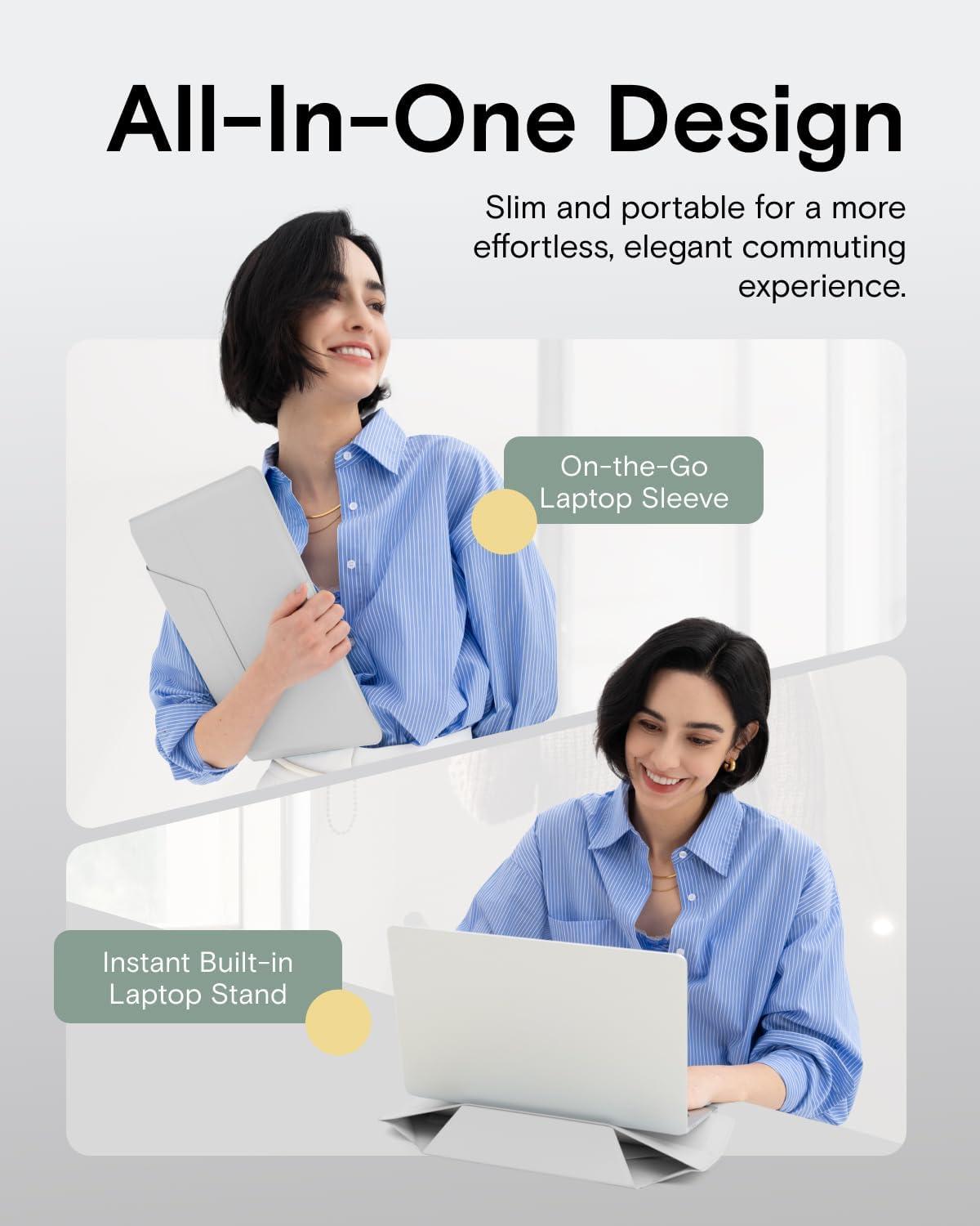 MOFT Laptop Carry Sleeve, 2-in-1 Laptop Bag & Stand for 14″ MacBook Air/Pro & Dell/HP/Lenovo/Asus, Stylish Slim Computer Sleeve Bag with Expandable Storage for Computer Accessories, Soothing Mist(Misty Cove)