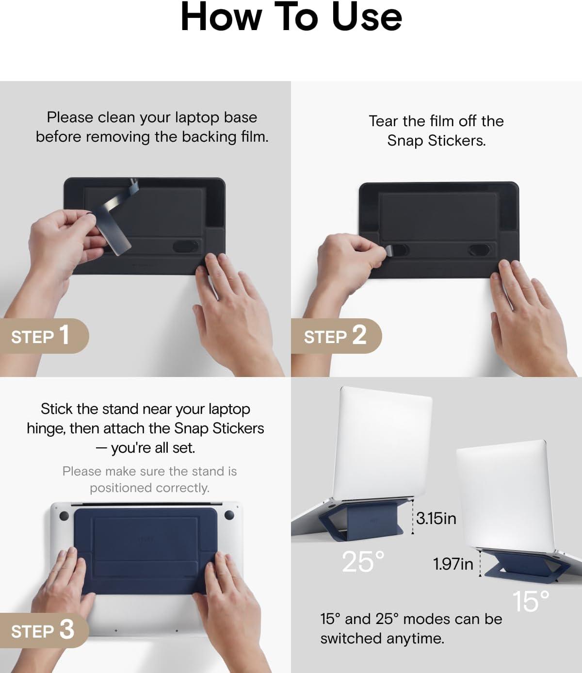 [Adjustable Golden Angles] It comes with two most needed angles, 25° and 15°. The high-lifting mode raise a laptop 3in, making users sit in a right posture. The low-lifting make the screen 2in higher to adopt to the standing situation.