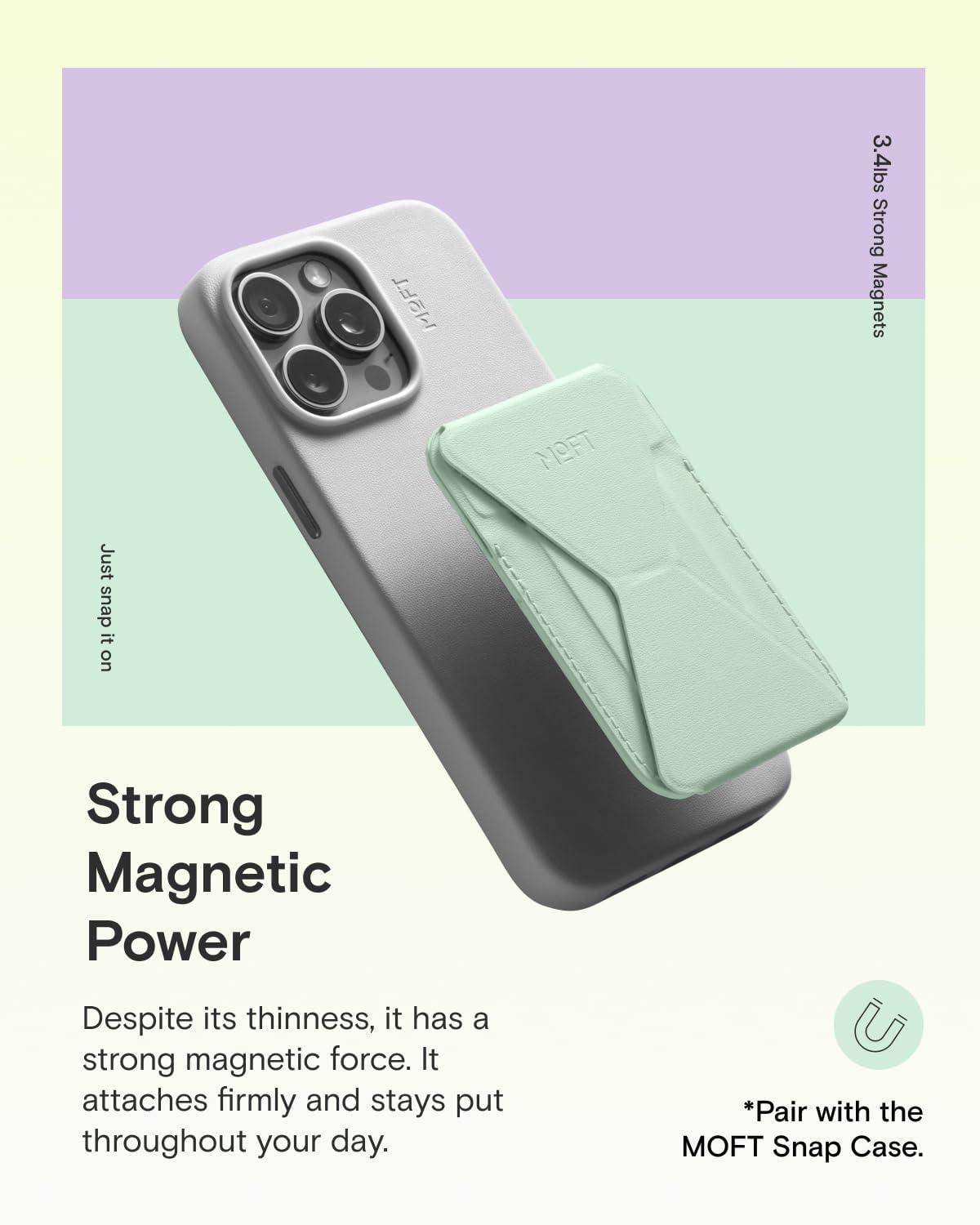 MOFT Magnetic Wallet Stand Compatible with iPhone 17/16/15/14/13/12 Series, Angle Adjustment & Magsafe Compatible MOVAS Phone Stand,BlackBerry(Peppermint)
