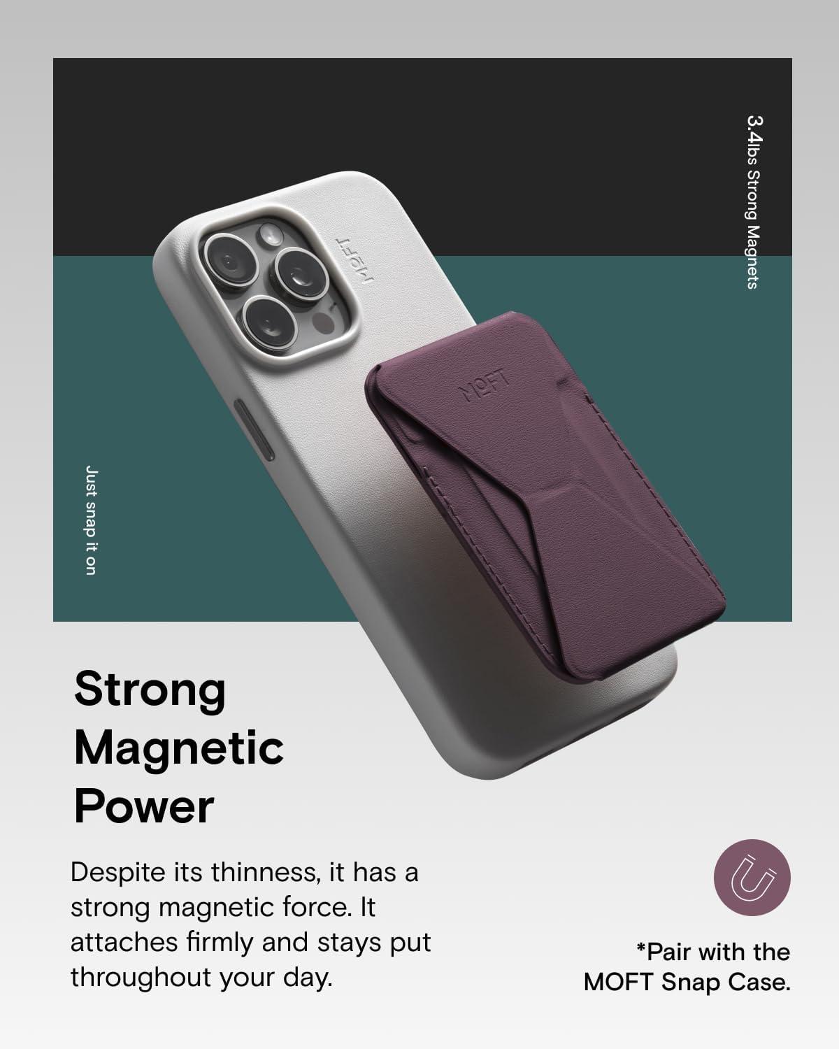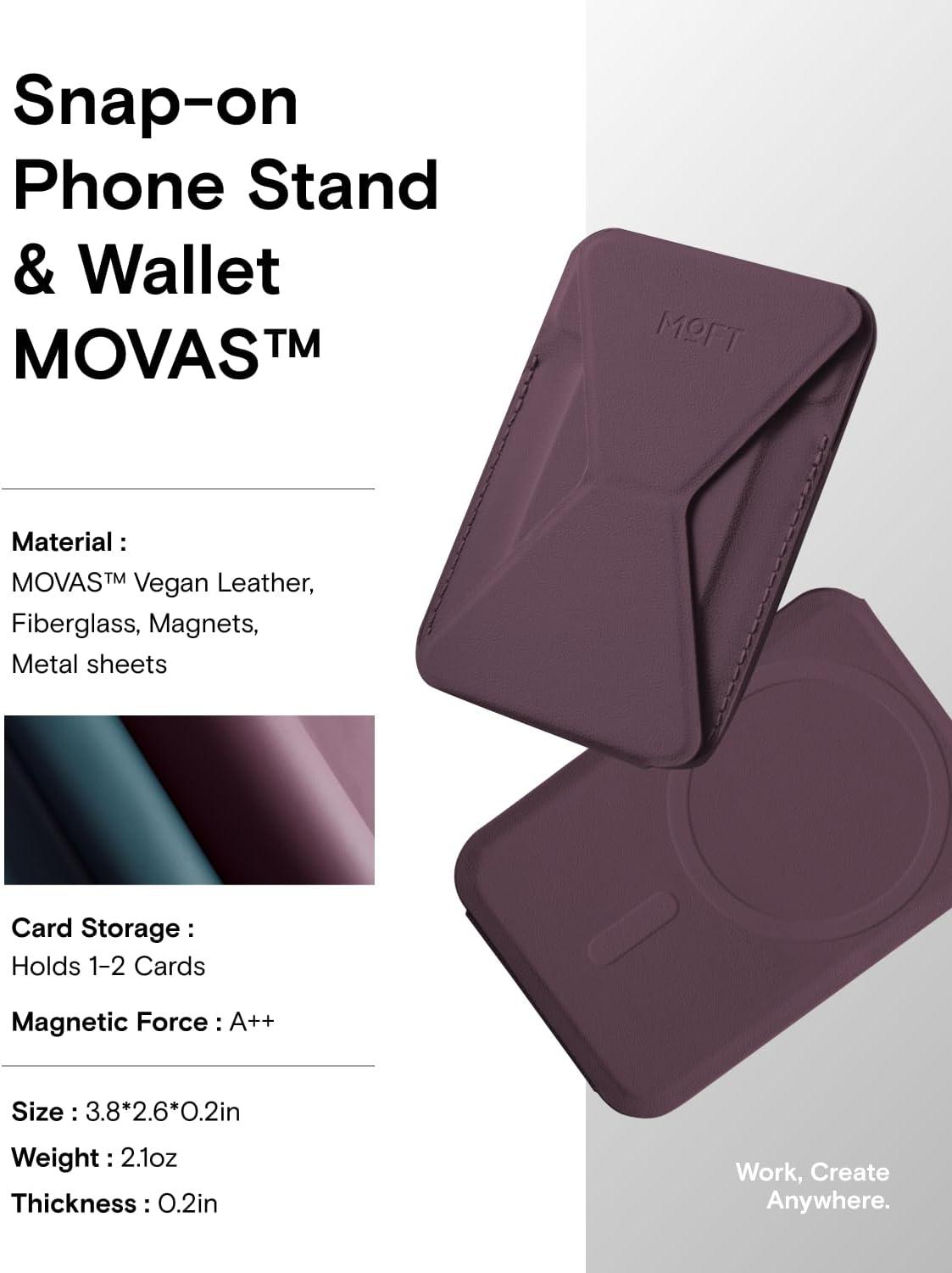 MOFT Magnetic Wallet Stand Compatible with iPhone 17/16/15/14/13/12 Series, Angle Adjustment & Magsafe Compatible MOVAS Phone Stand,Brownie(BlackBerry)