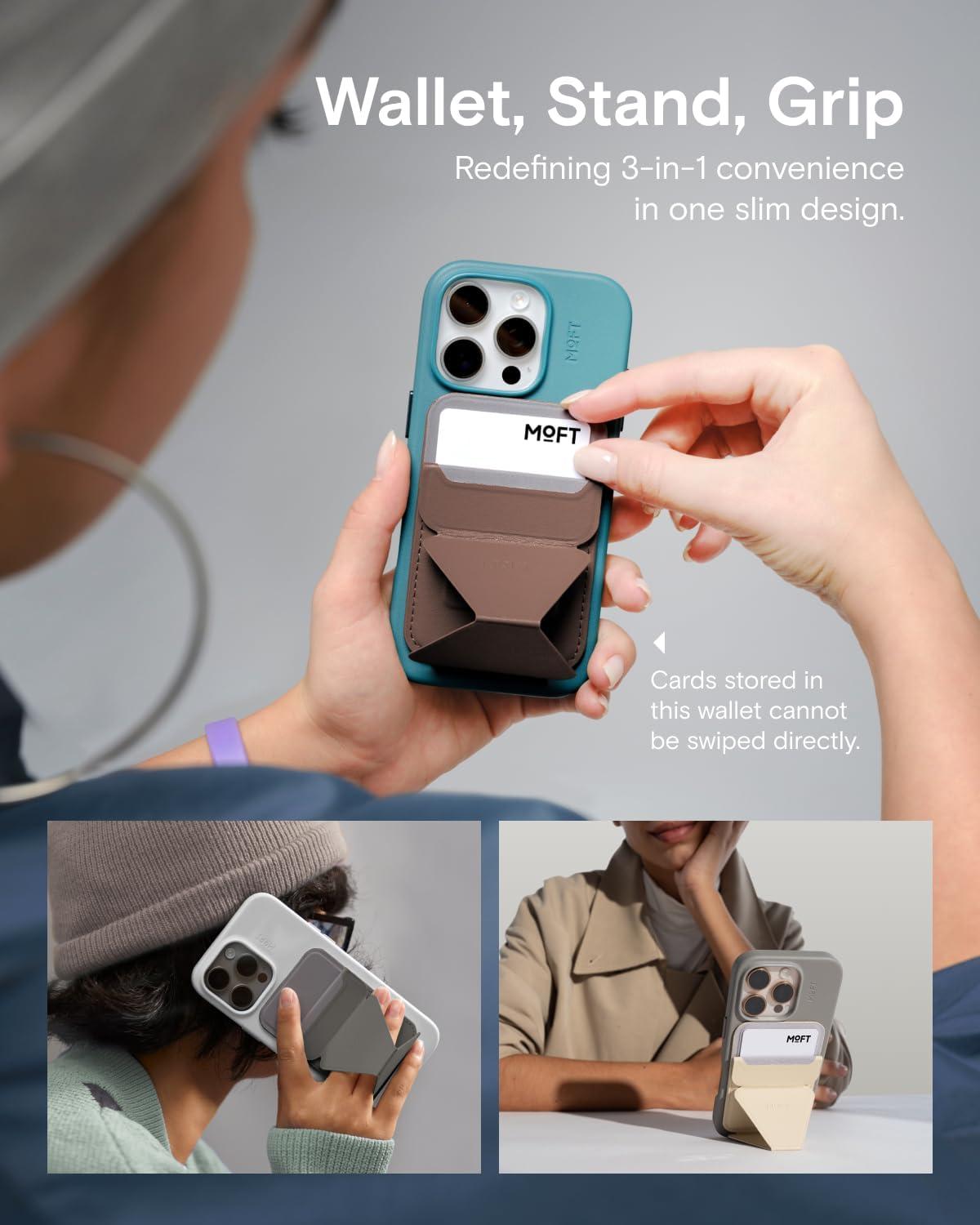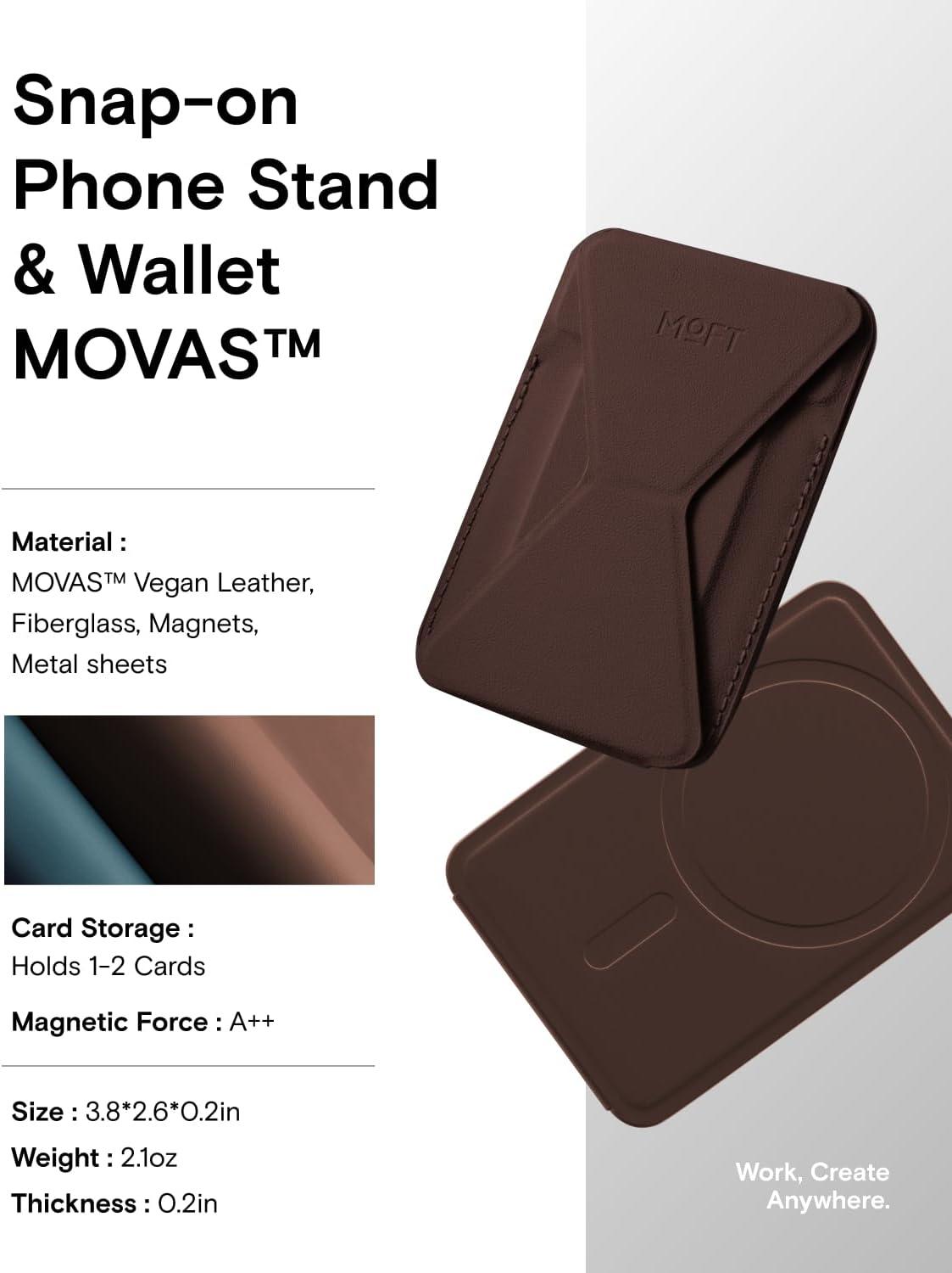 MOFT Magnetic Wallet Stand Compatible with iPhone 17/16/15/14/13/12 Series, Angle Adjustment & Magsafe Compatible MOVAS Phone Stand,Brownie(Brownie)