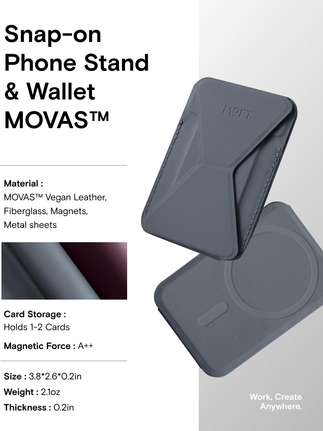 MOFT Magnetic Wallet Stand Compatible with iPhone 17/16/15/14/13/12 Series, Angle Adjustment & Magsafe Compatible MOVAS Phone Stand,Brownie(Cool Grey)