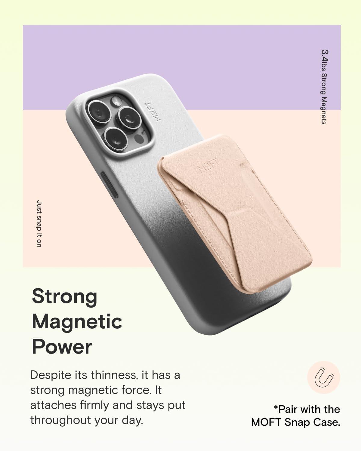 MOFT Magnetic Wallet Stand Compatible with iPhone 17/16/15/14/13/12 Series, Angle Adjustment & Magsafe Compatible MOVAS Phone Stand,Brownie(Peach pink)