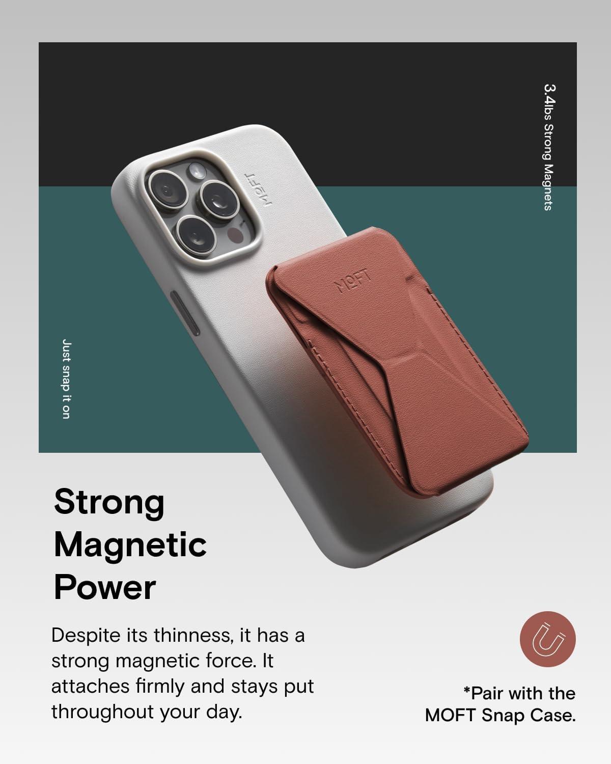 MOFT Magnetic Wallet Stand Compatible with iPhone 17/16/15/14/13/12 Series, Angle Adjustment & Magsafe Compatible MOVAS Phone Stand,Brownie(Sienna Brown)