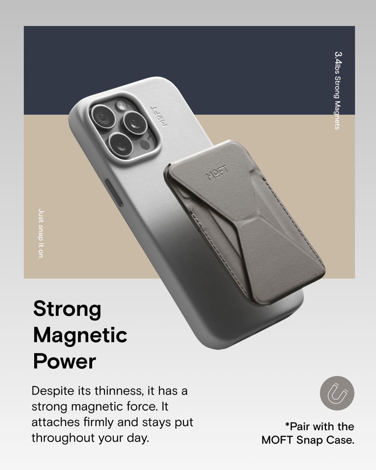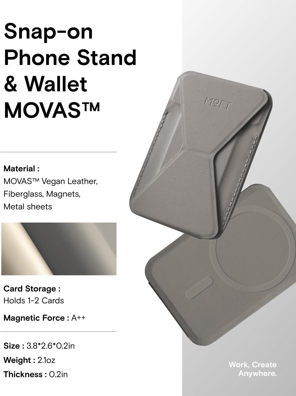 MOFT Magnetic Wallet Stand Compatible with iPhone 17/16/15/14/13/12 Series, Angle Adjustment & Magsafe Compatible MOVAS Phone Stand,Brownie(Taupe)