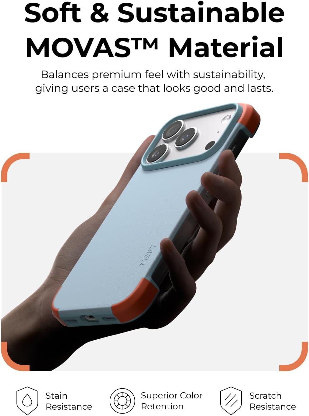 MOVAS, Beyond Leather Innovation: Features MOFT’s proprietary MOVAS-P Series vegan leather—soft to the touch, remarkably durable, and eco-friendly. This MOVAS vegan leather iPhone 17 Pro Max case redefines what leather alternatives can be,elevating your everyday experience with style and sustainability.