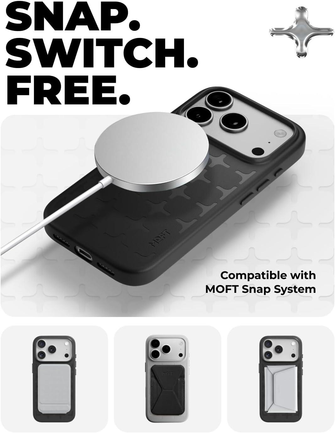Freedom, Unlocked: Effortlessly compatible with MagSafe accessories like MOFT Snap system, this vegan leather iPhone case gives you a quick-release convenience—so you can charge, switch, and move without limits.