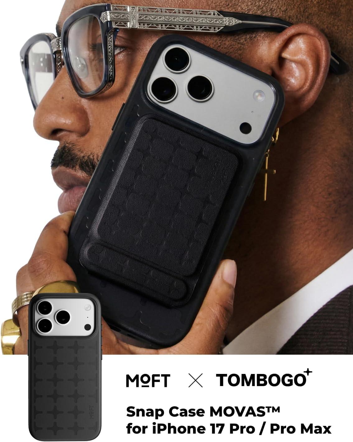 MOFT MOVAS Snap Case for iPhone 17 Pro Max, MagSafe Compatible, Soft-Touch Vegan Leather, Classic Minimalist Design, Lightweight, Stain-Resistant & Camera Protection,Soothing Mist(Tombogo x Jet Black)