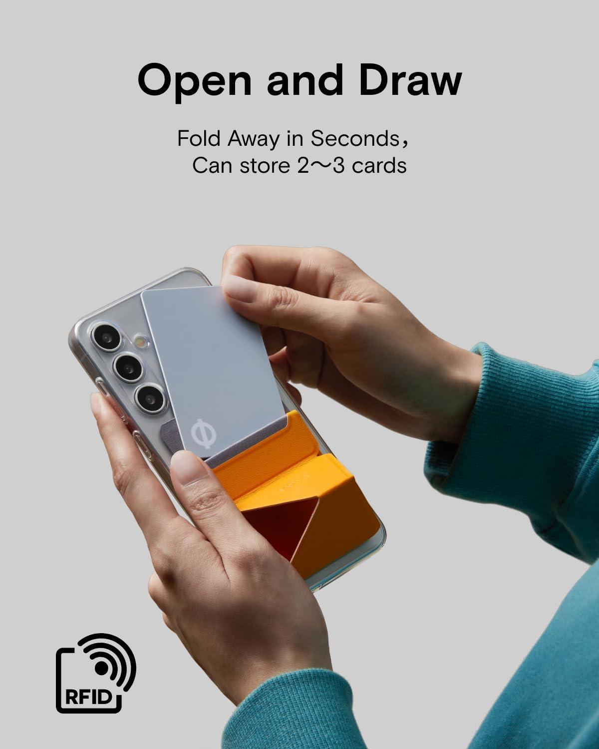 Fitting 2-3 Cards: The origami-inspired phone stand folds flat when not in use and provides privacy by covering up to 2-3 cards in the built-in, RFID-blocking wallet, eliminating the need to carry an extra wallet.