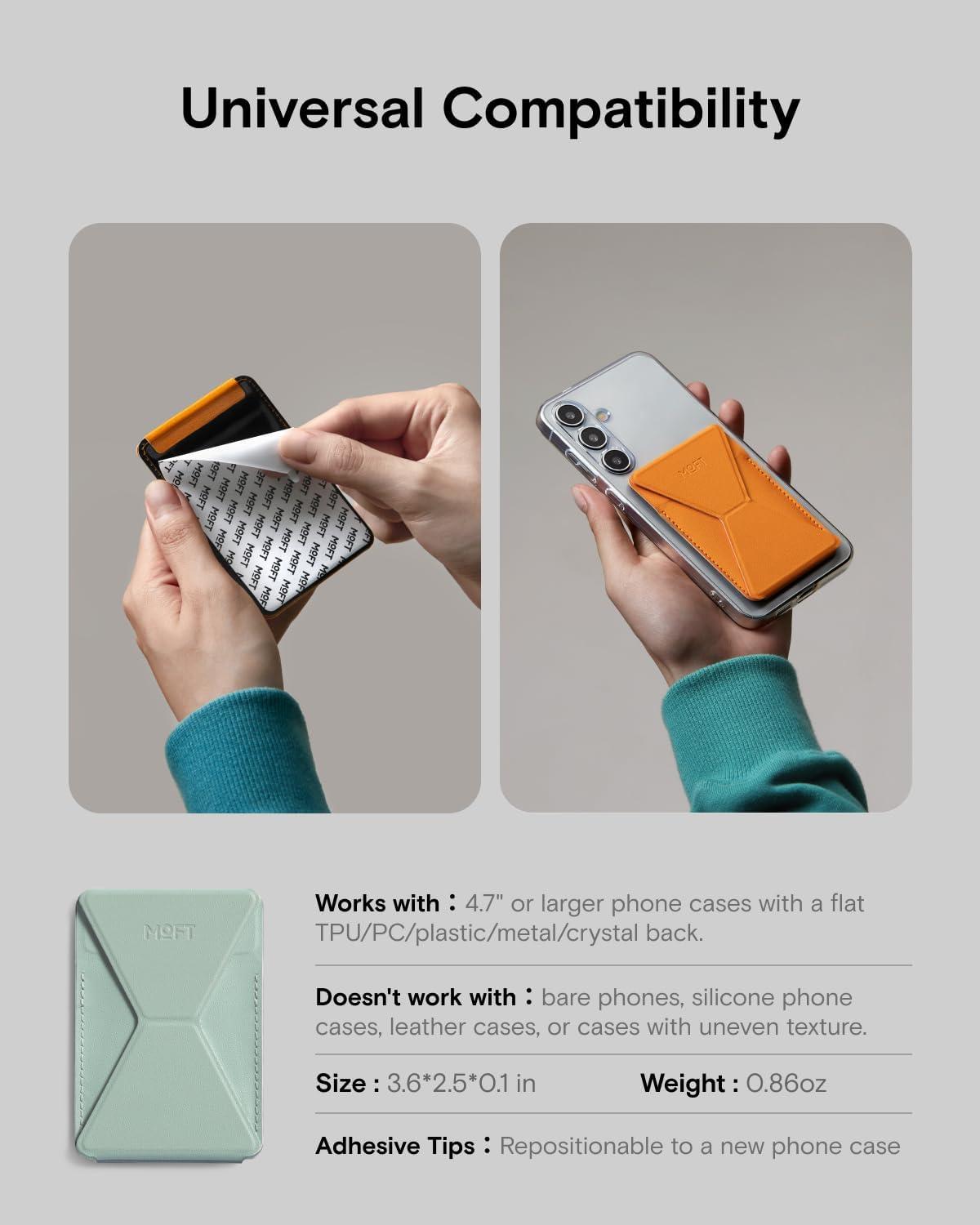Lightest Combo of Phone Stand, Wallet & Grip: Weighing only 0.85oz, it's the ultimate minimalist carry. Crafted with high color- and scratch-resistant MOVAS Vegan Leather, it adds a lively touch to your minimalist lifestyle.