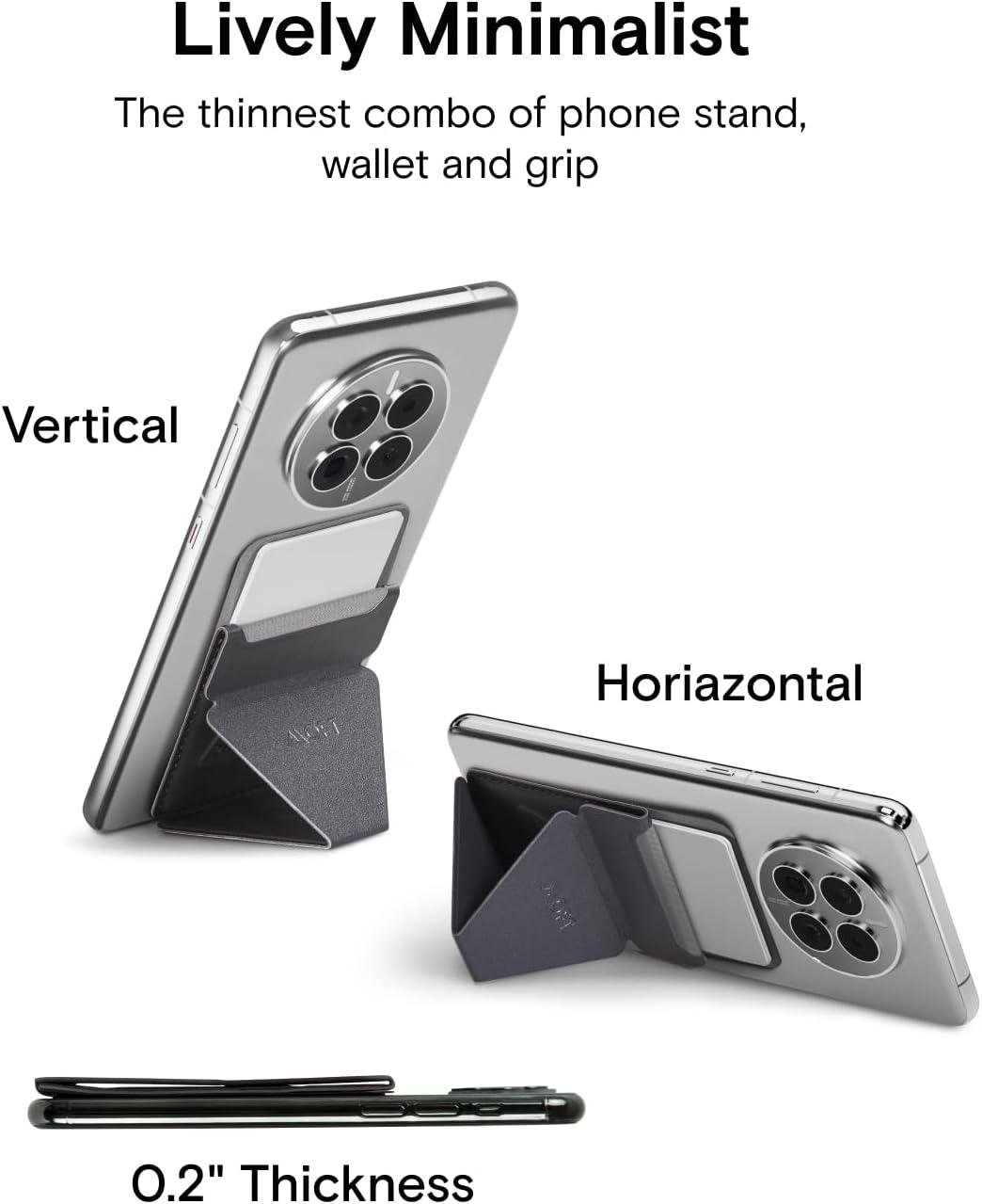 Lightest Combo of Phone Stand, Wallet & Grip: Weighing only 0.85oz, it's the ultimate minimalist carry. Crafted with high color- and scratch-resistant MOVAS Vegan Leather, it adds a lively touch to your minimalist lifestyle.