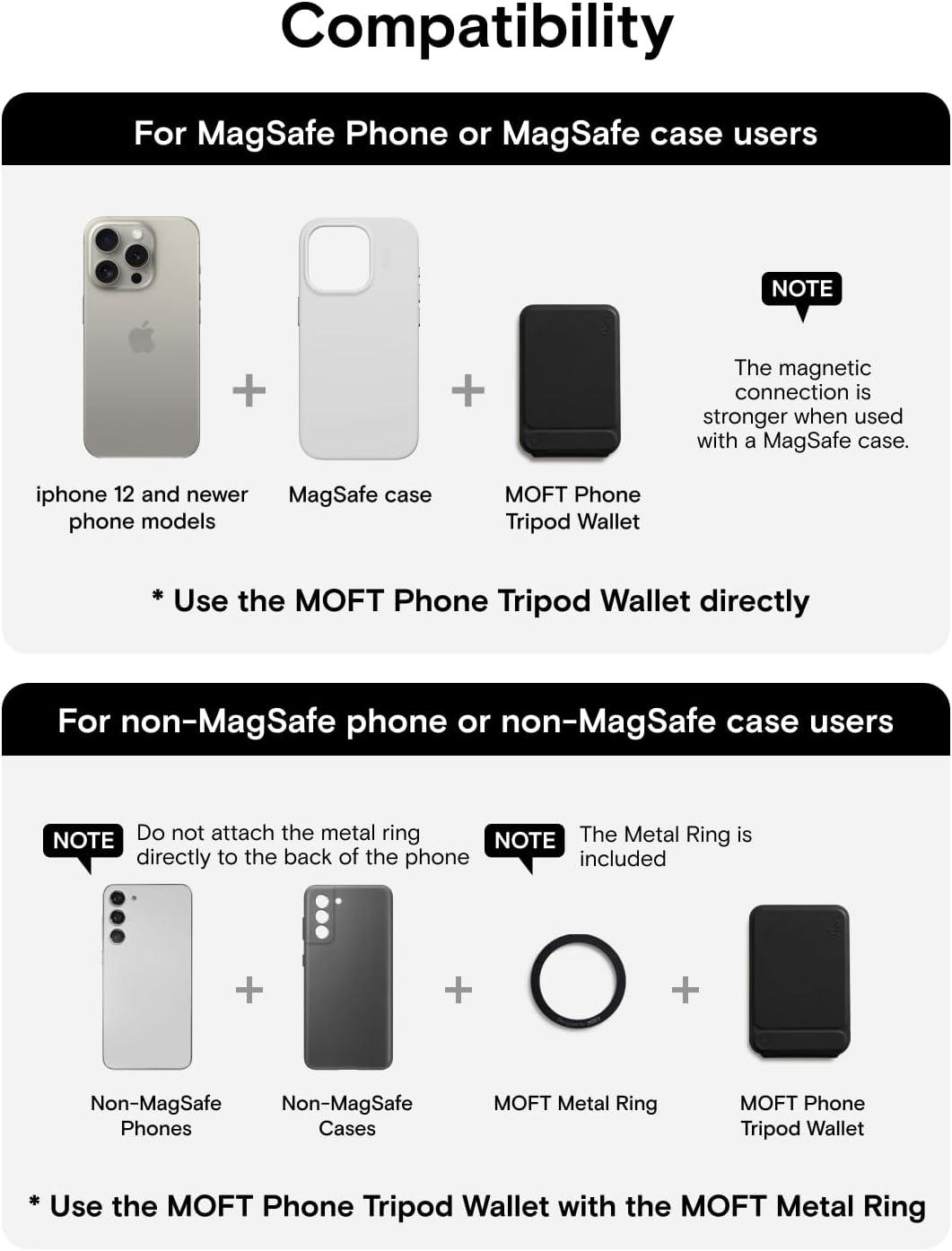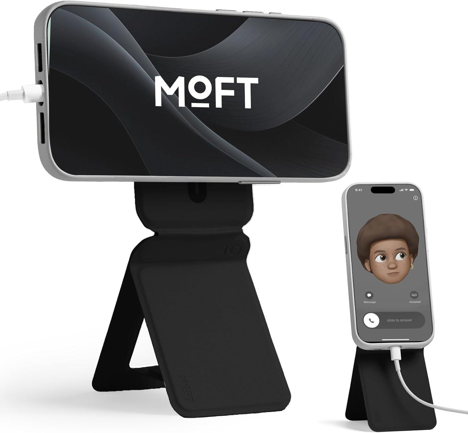MOFT Phone Stand, Magnetic Phone Tripod Stand Stain-Resistant MOVAS Leather & Angle Adjustment & Strong Magnets Tripod for iPhone 17/16/15/14/13/12 (Included Metal Ring)-Sapphire(Jet Black)