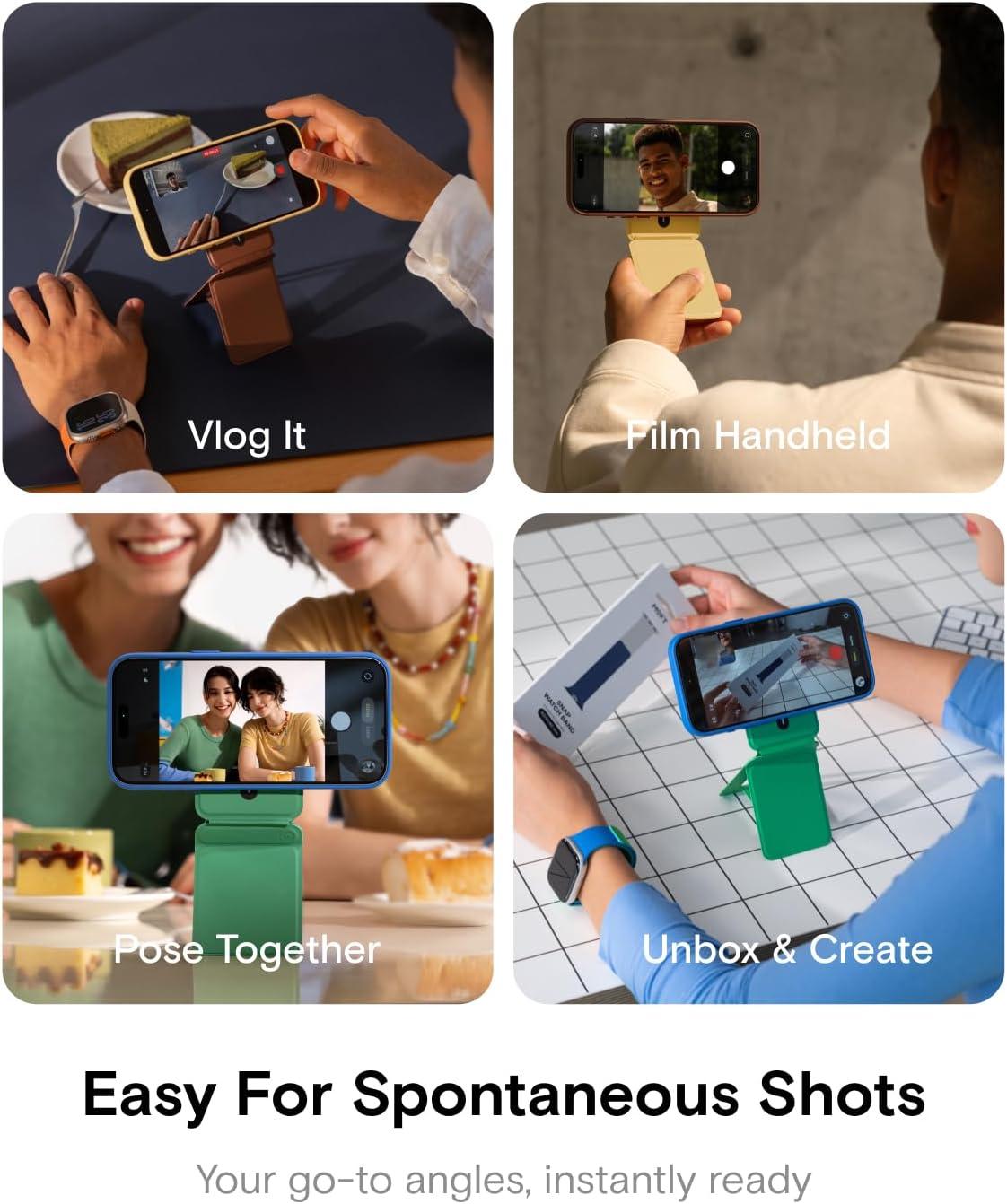 Multifunctional Angle Adjustment: With its innovative design, this phone tripod wallet offers versatile angle adjustment. In floating mode, it’s your ideal group photo sidekick, allowing you to capture memorable moments with friends and family. In landscape mode, you get a vlogging tripod that works on any surface. Fold up its base, you can hold it as a phone tripod for vlogging on the go. It’s also a fully adjustable phone stand, providing comfort while watching videos or having FaceTime calls.