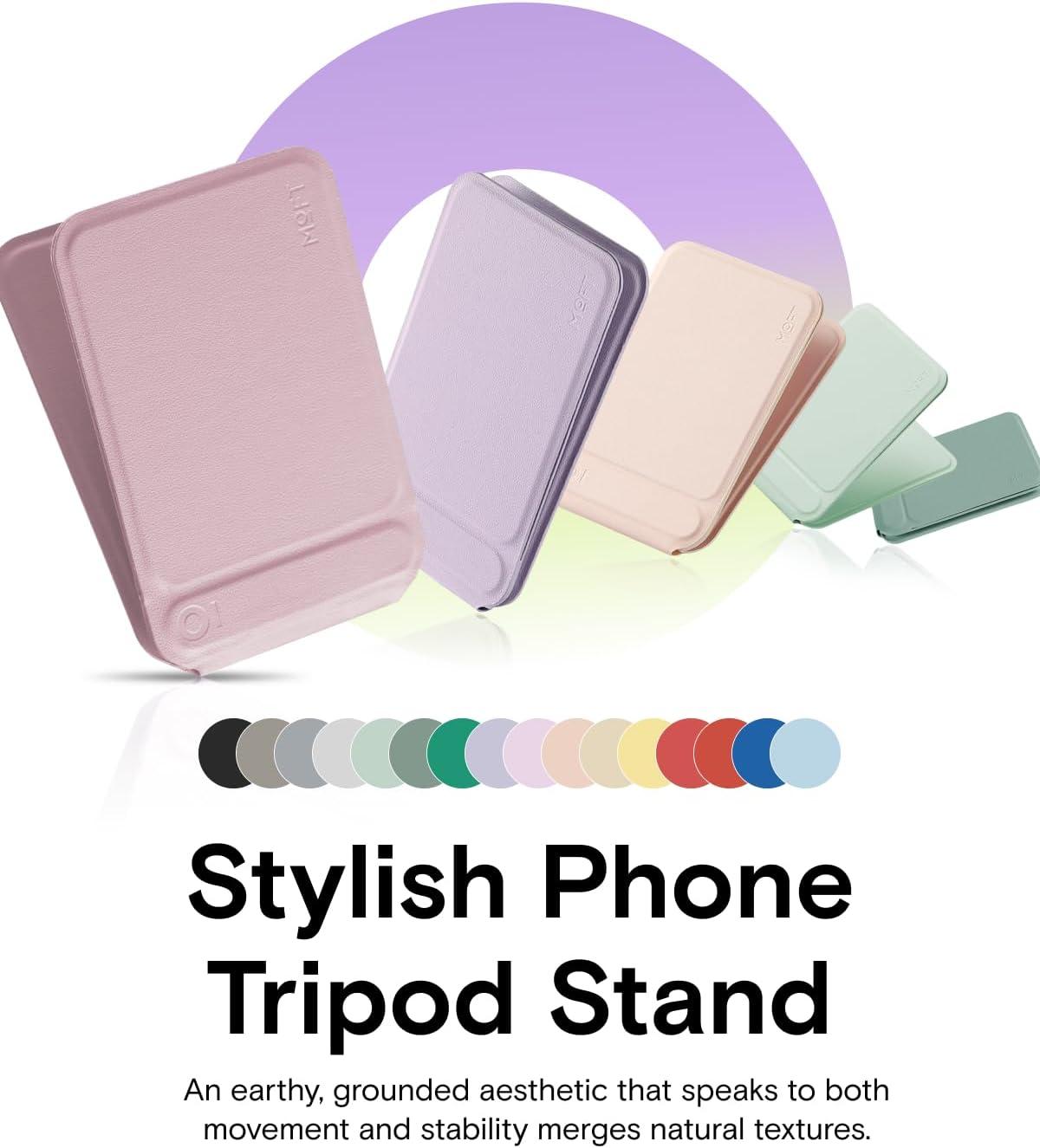 MOFT Phone Tripod Wallet for iPhone, Mulit-Angles, Lightweight & Portable Phone Stand, MOVAS Vegan Leather Magnetic Wallet, Strong Magnets, NFC Card Holder,Travel Essential, Brownie (with Card Slot)(Blush)