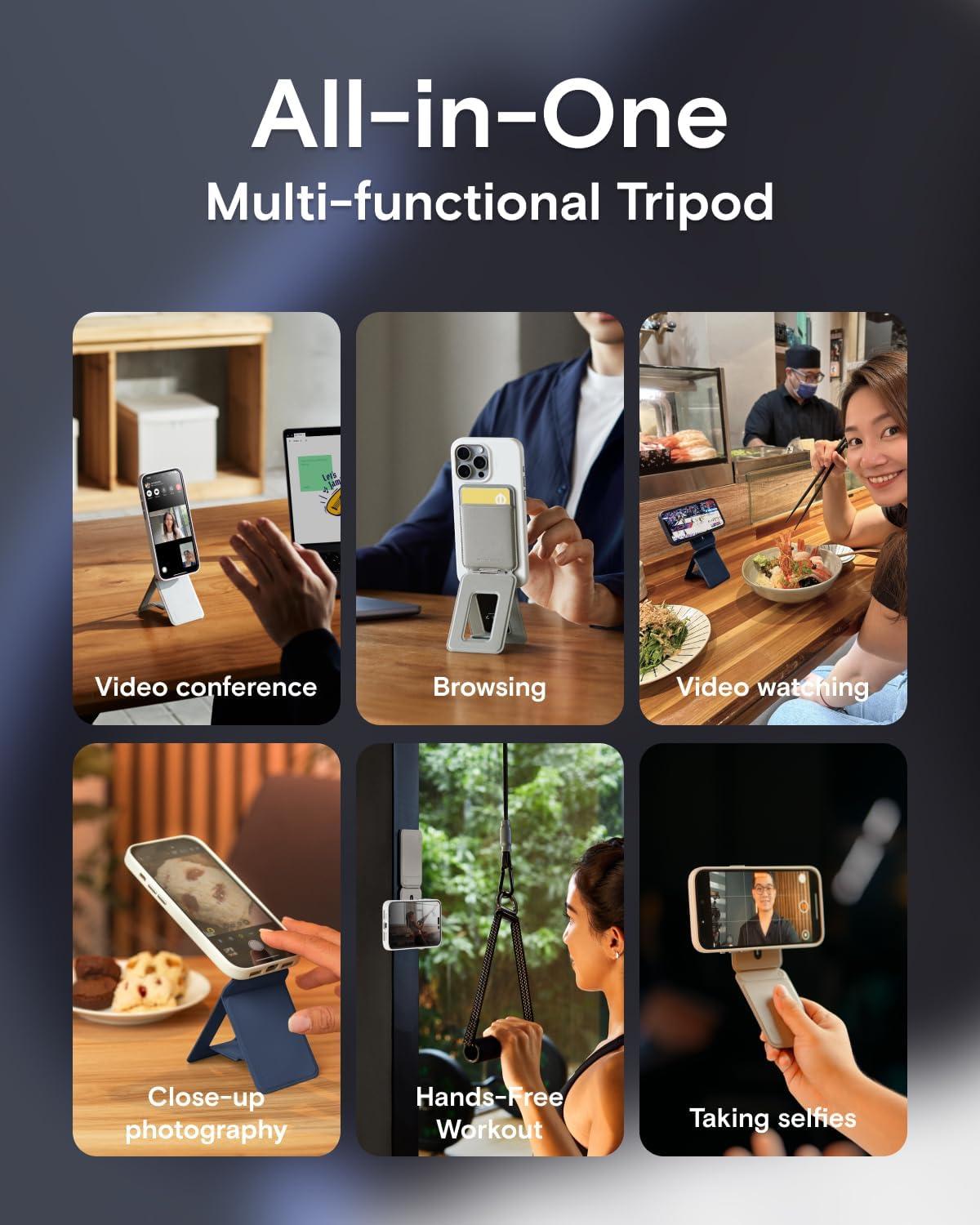 Multifunctional Angle Adjustment: With its innovative design, this phone tripod wallet offers versatile angle adjustment. In floating mode, it’s your ideal group photo sidekick, allowing you to capture memorable moments with friends and family. In landscape mode, you get a vlogging tripod that works on any surface. Fold up its base, you can hold it as a phone tripod for vlogging on the go. It’s also a fully adjustable phone stand, providing comfort while watching videos or having FaceTime calls.
