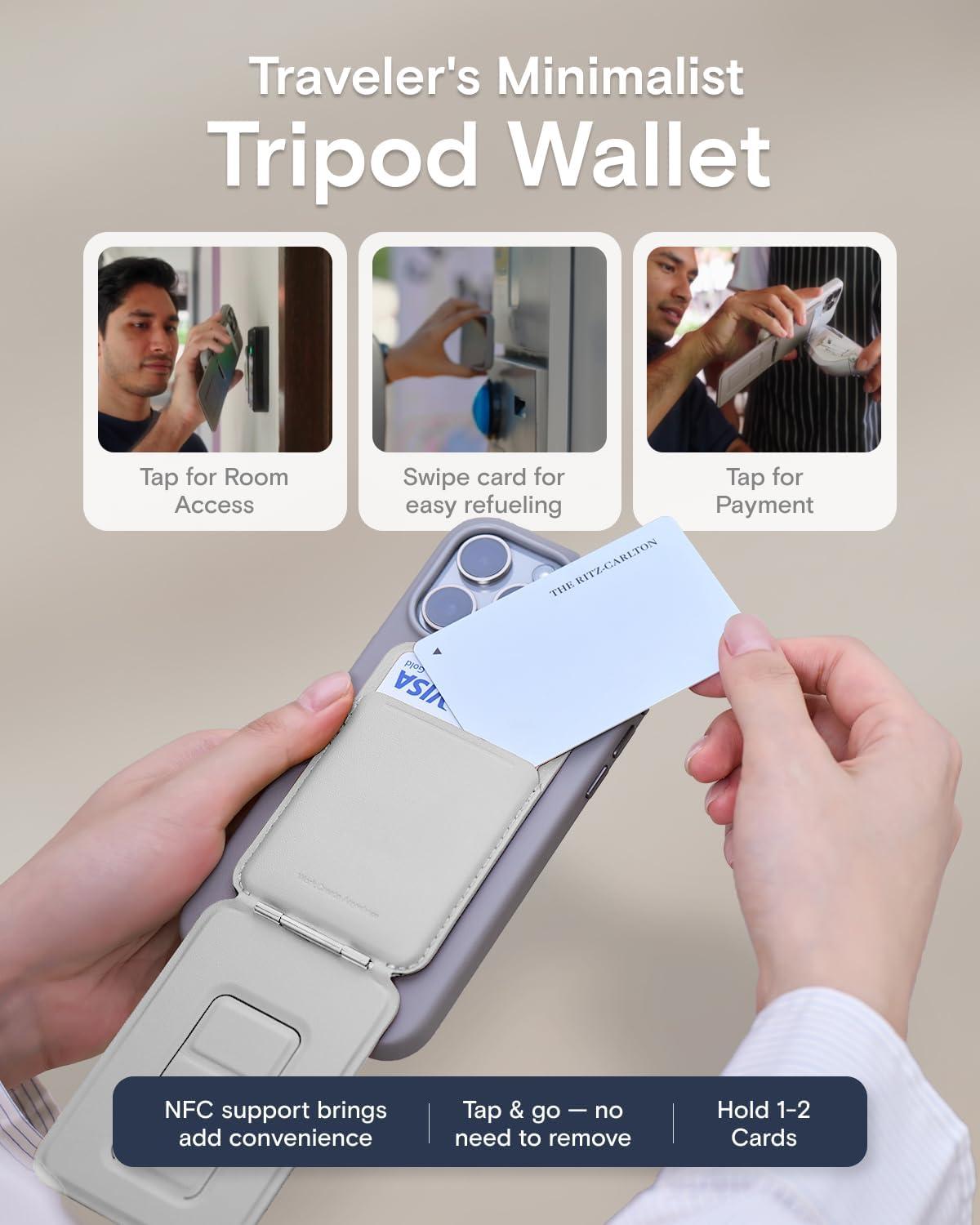 MOFT Phone Tripod Wallet for iPhone, Mulit-Angles, Lightweight & Portable Phone Stand, MOVAS Vegan Leather Magnetic Wallet, Strong Magnets, NFC Card Holder,Travel Essential, Brownie (with Card Slot)(Misty Cove x With Card Slot)