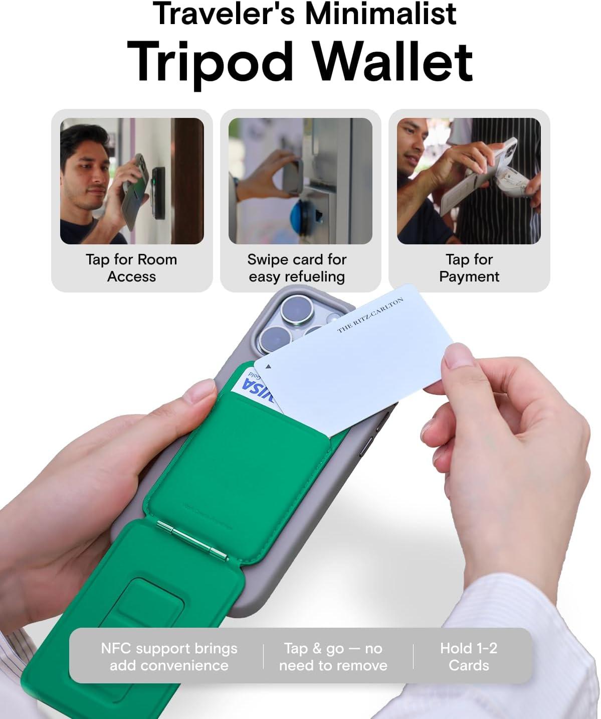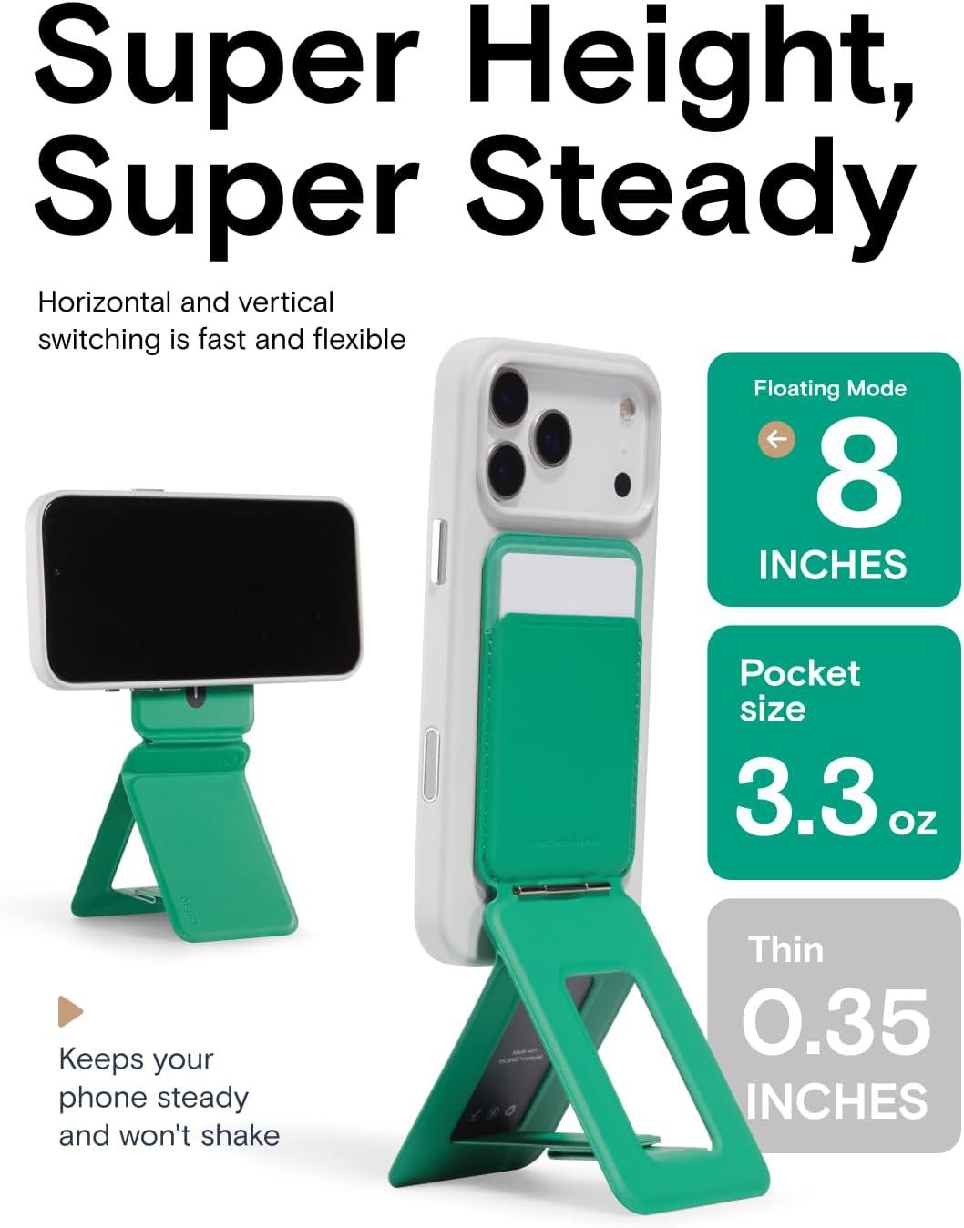 MOFT Phone Tripod Wallet for iPhone, Mulit-Angles, Lightweight & Portable Phone Stand, MOVAS Vegan Leather Magnetic Wallet, Strong Magnets, NFC Card Holder,Travel Essential, Brownie (with Card Slot)(Oz Green x With Card Slot)