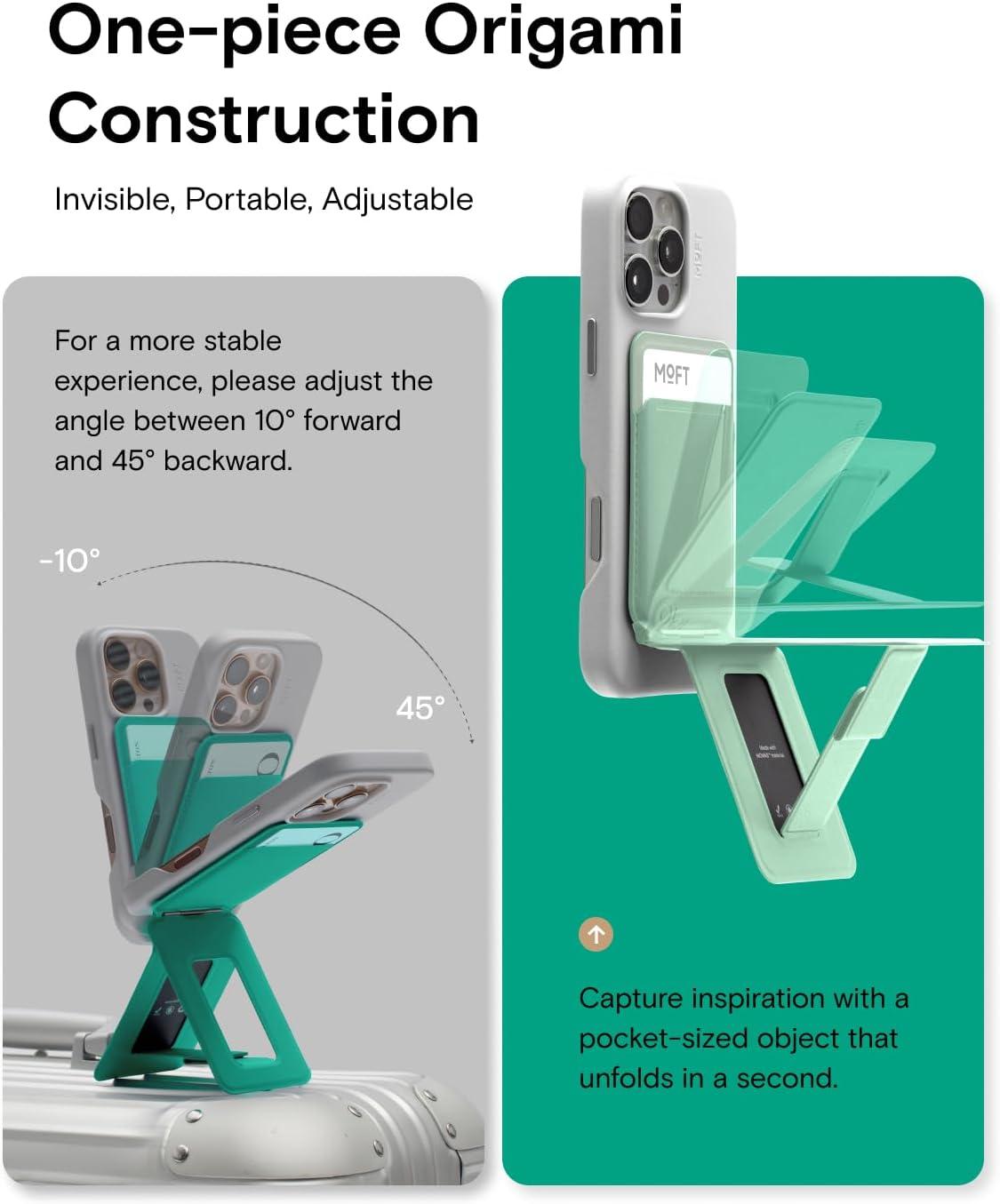Foldaway On-the-Go Companion: With a thickness of only 0.35″ and weighing just 3.4oz, this phone wallet fits in your palm and pocket without adding bulk. It’s the perfect on-the-go companion, allowing you to access all its features wherever you are. Additionally, it can be used as a stand for the iPhone’s Standby mode on any surface. MOFT phone holder available in stylish 5 colors, it complements any style or outfit.