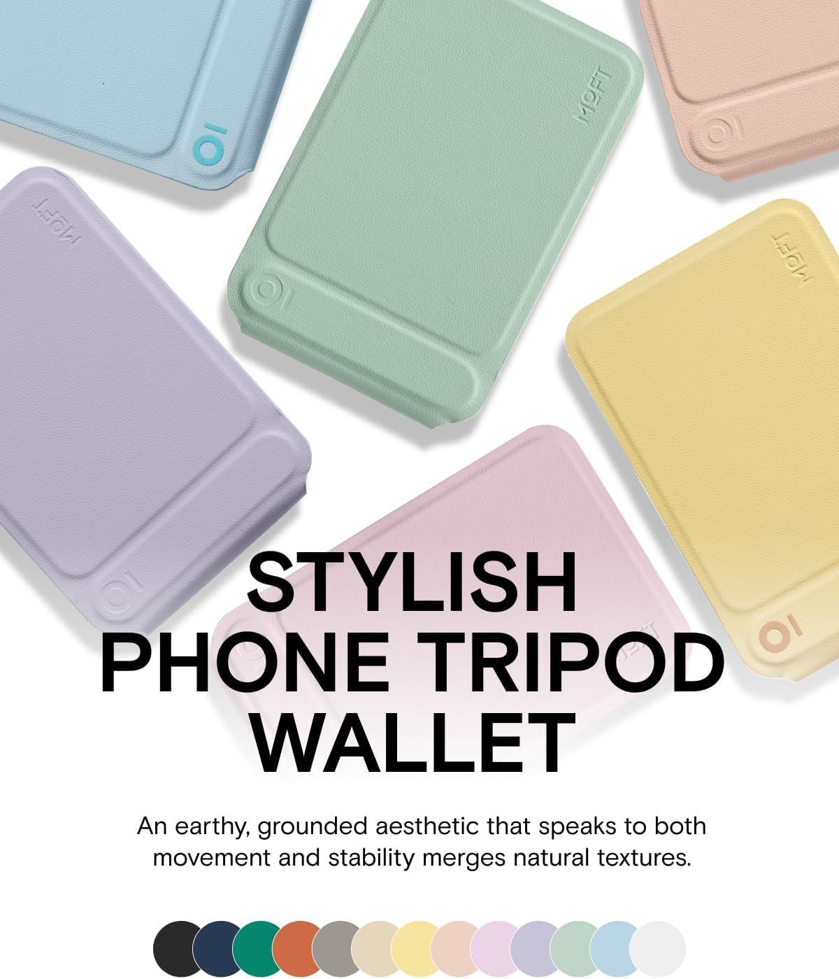 MOFT Phone Tripod Wallet for iPhone, Mulit-Angles, Lightweight & Portable Phone Stand, MOVAS Vegan Leather Magnetic Wallet, Strong Magnets, NFC Card Holder,Travel Essential, Brownie (with Card Slot)(Peach pink x With Card Slot)