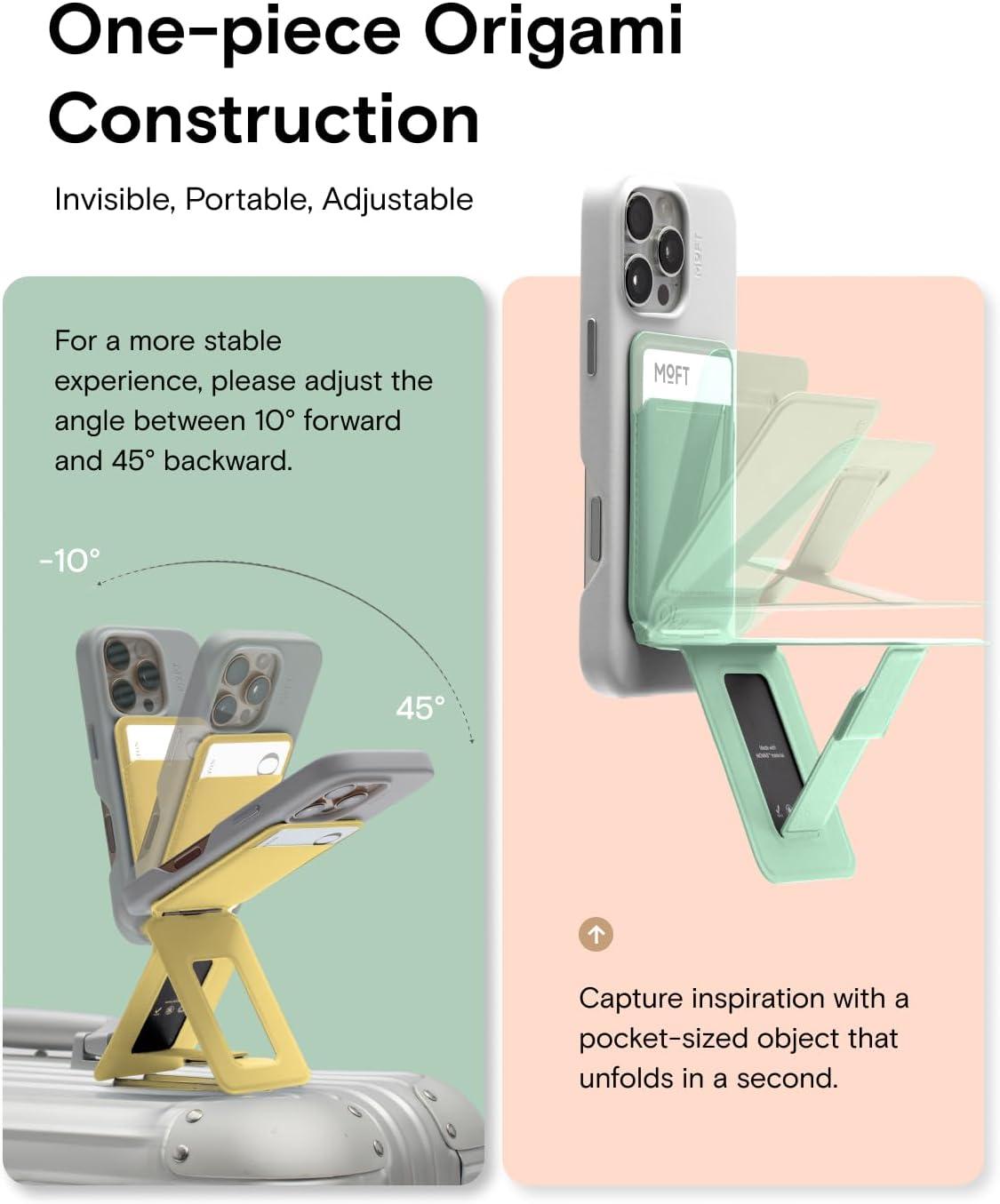 Foldaway On-the-Go Companion: With a thickness of only 0.35″ and weighing just 3.4oz, this phone wallet fits in your palm and pocket without adding bulk. It’s the perfect on-the-go companion, allowing you to access all its features wherever you are. Additionally, it can be used as a stand for the iPhone’s Standby mode on any surface. MOFT phone holder available in stylish 5 colors, it complements any style or outfit.