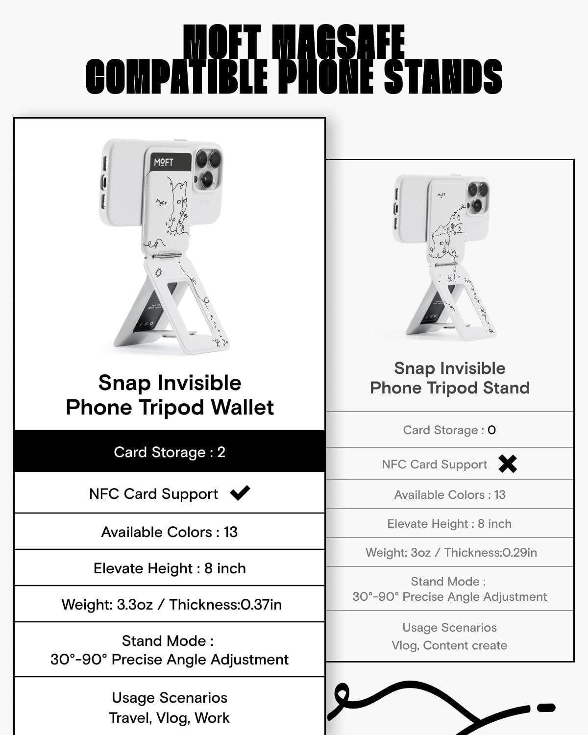 MOFT Phone Tripod Wallet for iPhone, Mulit-Angles, Lightweight & Portable Phone Stand, MOVAS Vegan Leather Magnetic Wallet, Strong Magnets, NFC Card Holder,Travel Essential, Brownie (with Card Slot)(Shantell Martin x Misty Cove x With Card Slot)