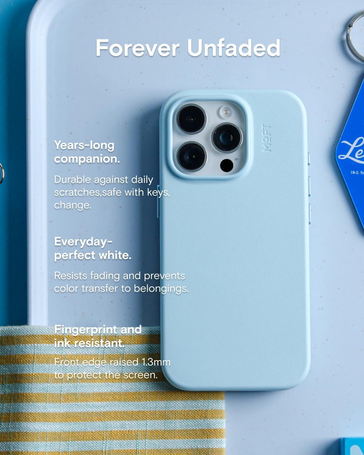 Forever Unfaded: Designed for iPhone 16 Pro Max, the Snap Phone Case with MOVAS comes in 7 colors, pairs effortlessly with all MOFT accessories. Classic, versatile colors offer a range of styling options, complementing your everyday look. Moreover, this vegan leather case has high color retention, resists fading and prevents color transfer to belongings. (This round cutout version is not compatible with MOFT phone lanyard.)