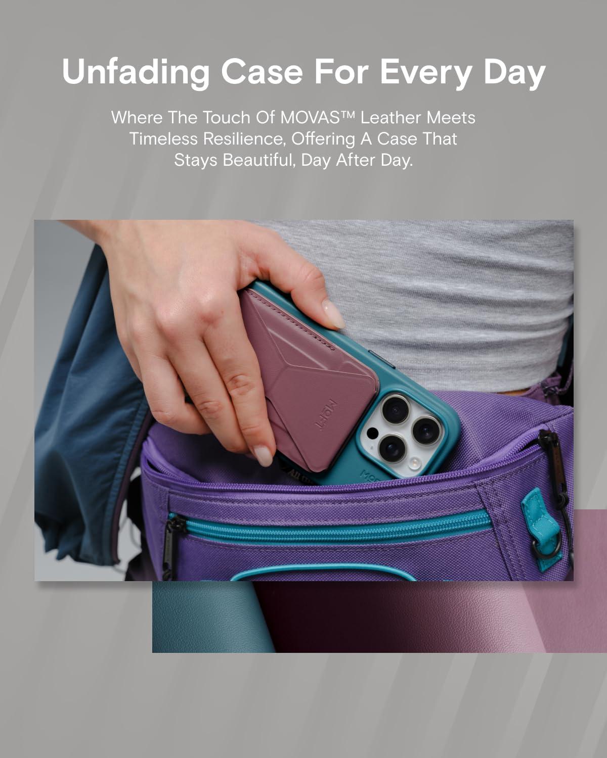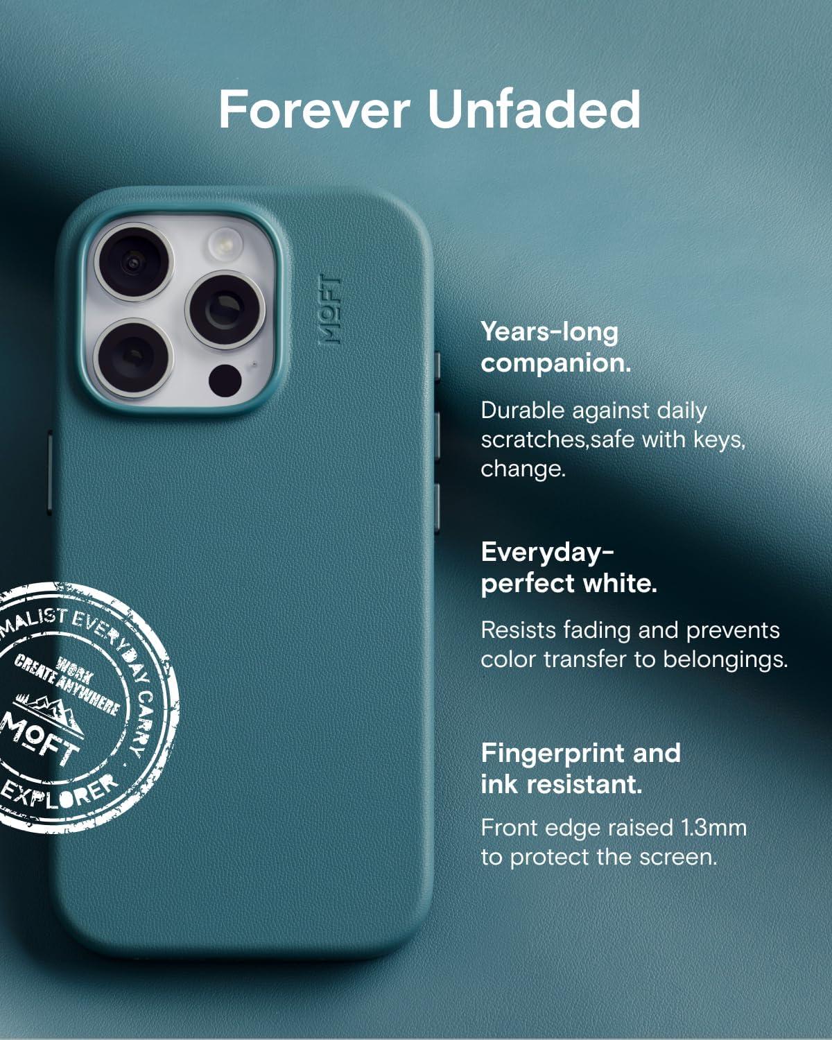 Forever Unfaded: Designed for iPhone 16 Pro Max, the Snap Phone Case with MOVAS comes in 7 colors, pairs effortlessly with all MOFT accessories. Classic, versatile colors offer a range of styling options, complementing your everyday look. Moreover, this vegan leather case has high color retention, resists fading and prevents color transfer to belongings. (This round cutout version is not compatible with MOFT phone lanyard.)