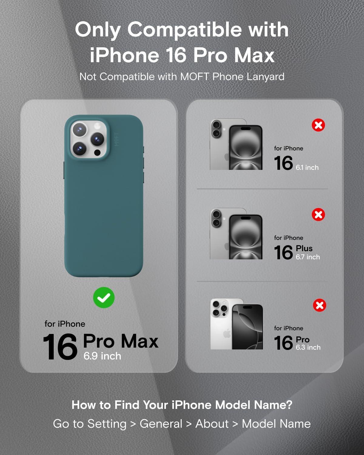 Enhanced Magnetic Compatibility: This Snap Phone Case is compatible with iPhone 16 Pro Max, features built-in magnet array that ensures seamless charging with magnetic and wireless chargers, while remaining fully compatible with all magnetic accessories. With a magnetic connection stronger than the bare iPhone, the phone case stays firmly connected to magnetic accessories like MOFT Snap Stands, Snap Battery Pack, and magnetic car mounts.