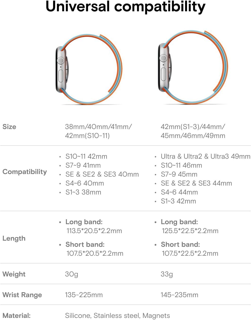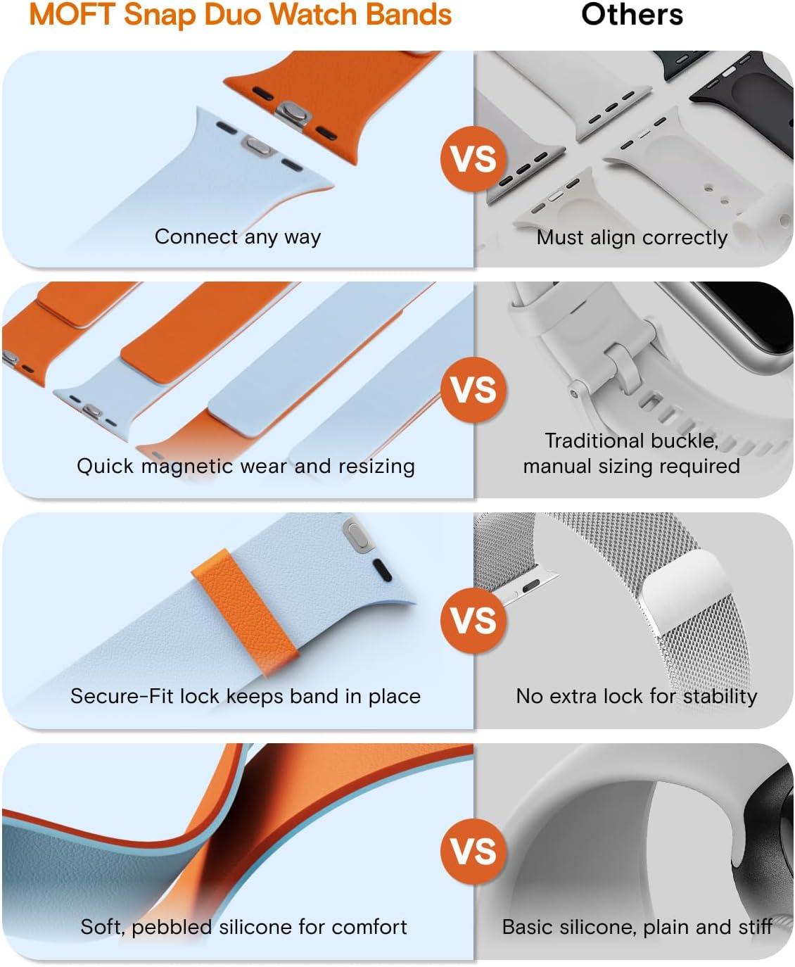 MOFT Snap Duo Watch Bands Compatible with Apple Watch, Quick Magnetic Wear, Duo-Color Design & Soft Silicone, iWatch Bands for Ultra 3/2/1, Series 11/10/9/8/7/SE/6/5/4/3/2/1, 38/40/41/42/44/45/46/49mm(Vast Black x Stardust)