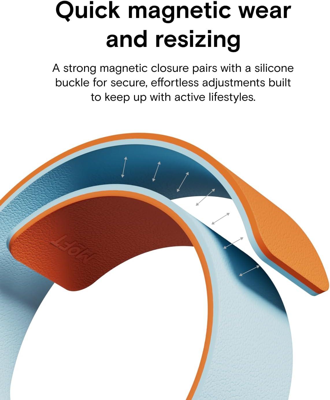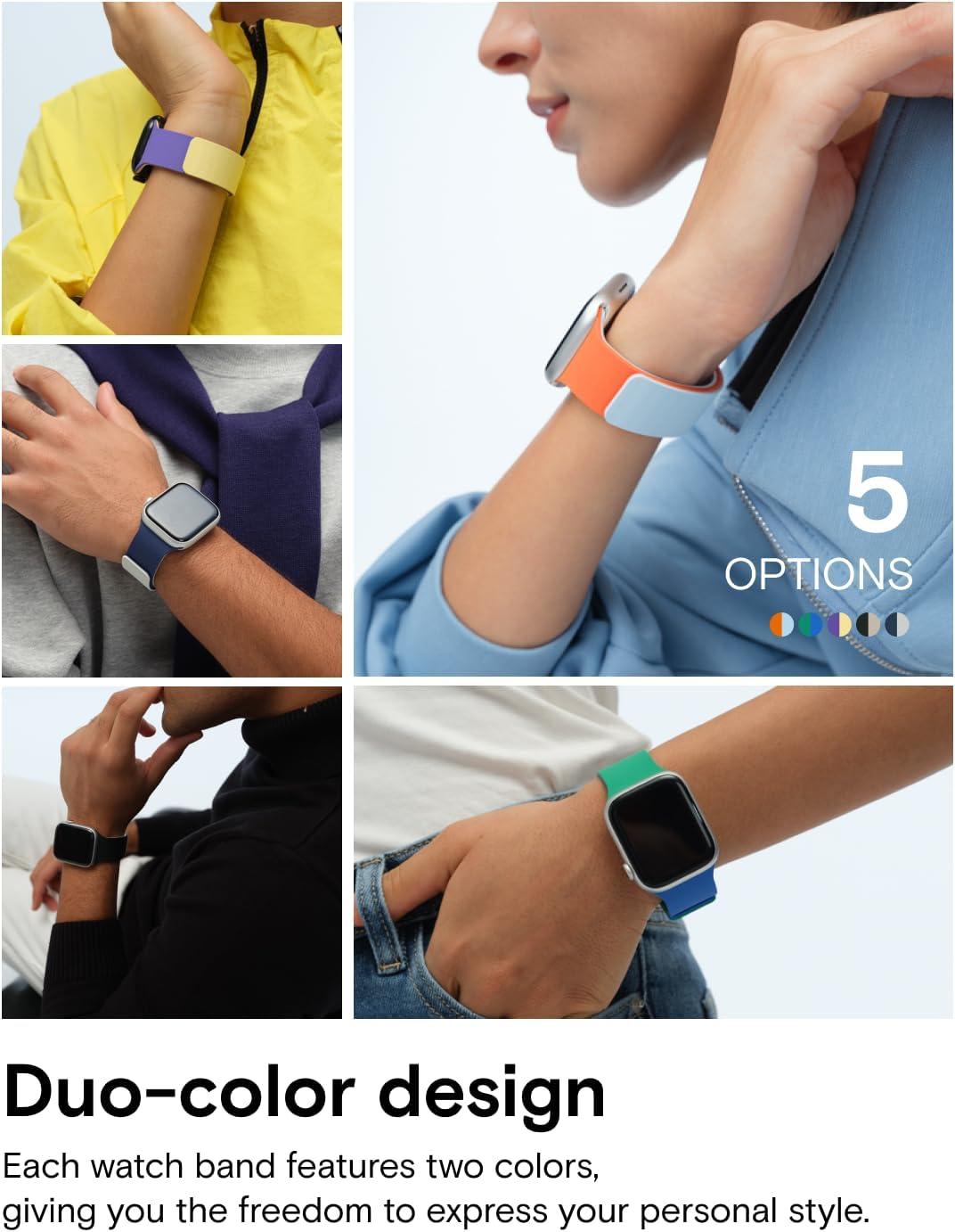 MOFT Snap Duo Watch Bands Compatible with Apple Watch, Quick Magnetic Wear, Duo-Color Design & Soft Silicone, iWatch Bands for Ultra 3/2/1, Series 11/10/9/8/7/SE/6/5/4/3/2/1, 38/40/41/42/44/45/46/49mm(Wake Orange x Swell Blue)